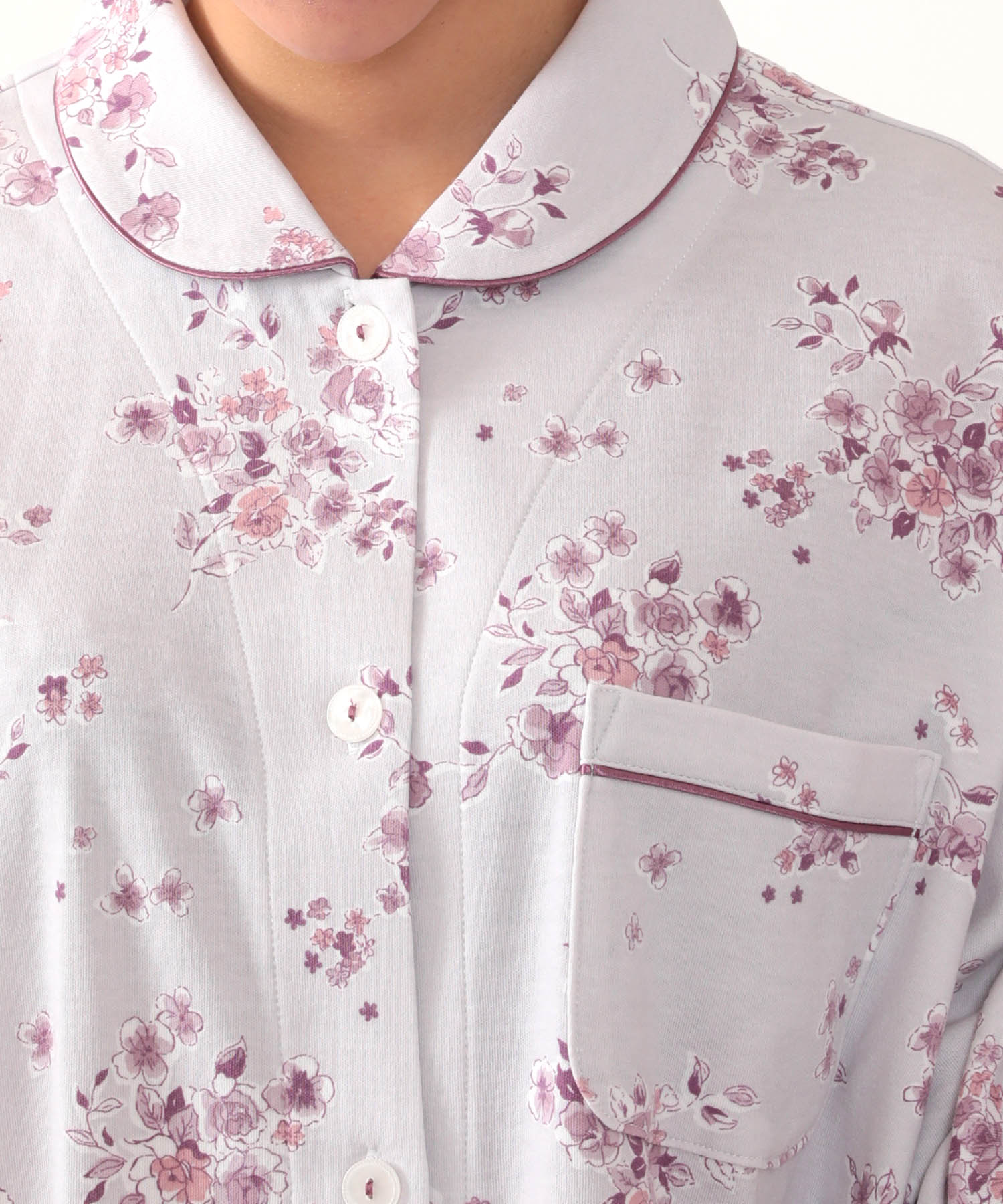 柄はシックな花柄。花のカラーを活かしたパイピングカラーがお洒落に効いています。