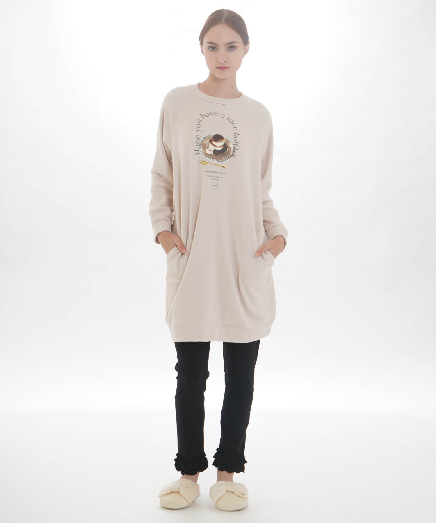 短い丈感で動きやすく、ルームウェアとしてアクティブに動く日にはぴったりのデザインです。