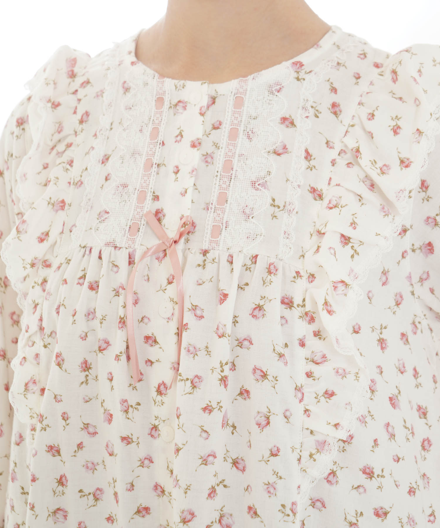 肩幅の内側に付けたフリルは肩幅を華奢な印象に見せてくれるデザイン。
