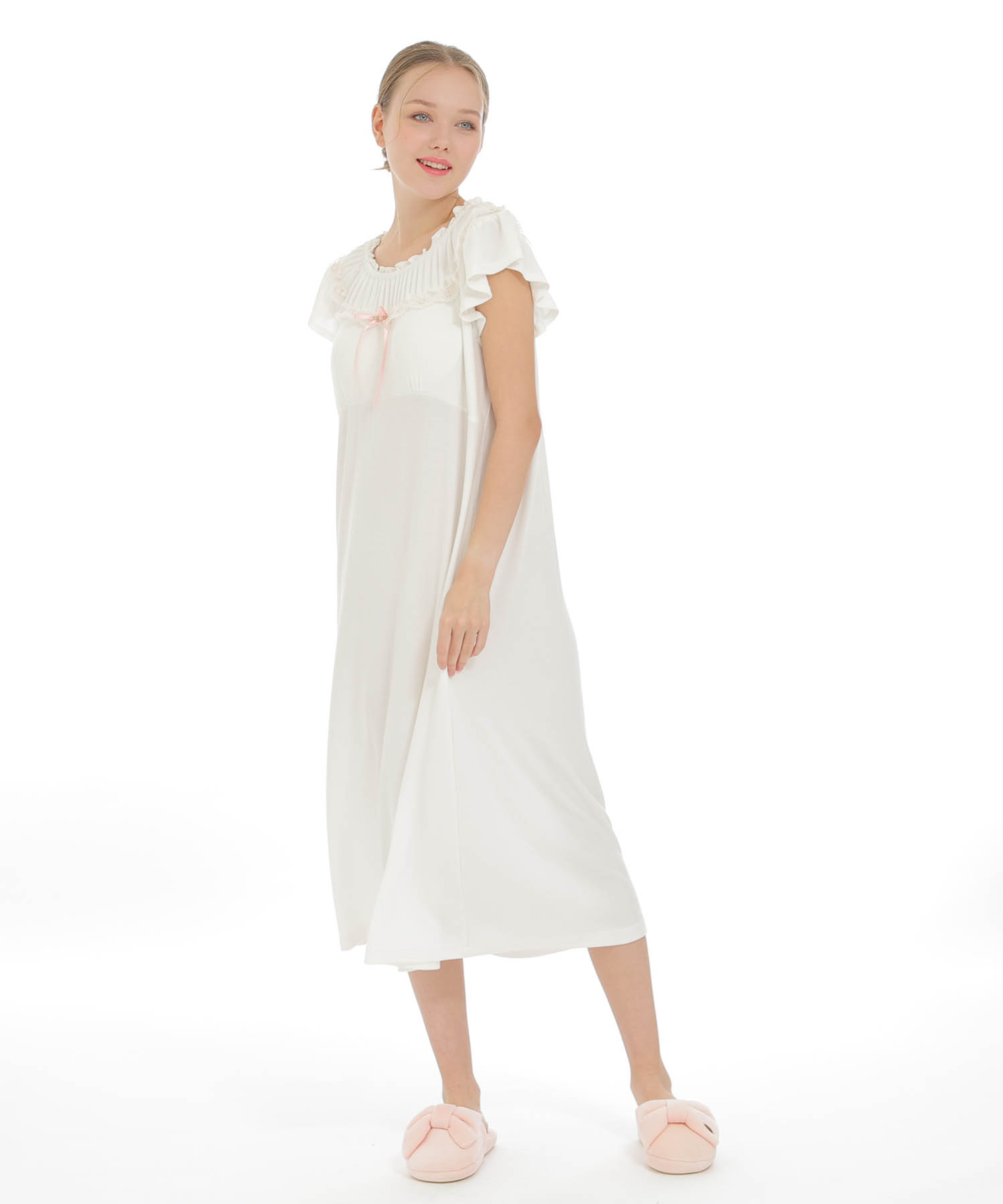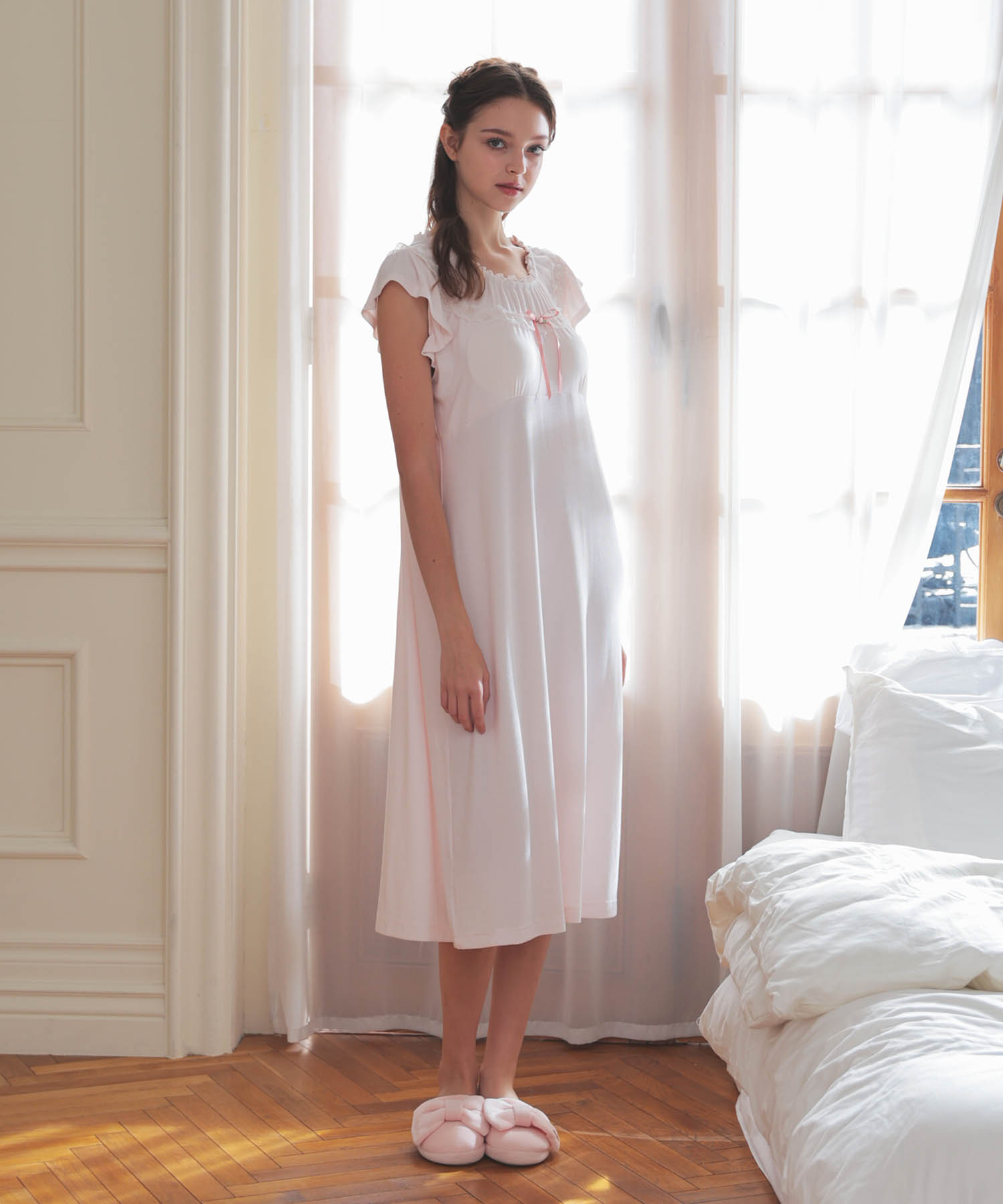 胸パットが入っているのでラインや透け感を気にせず、一枚でさらりと着用できます。
