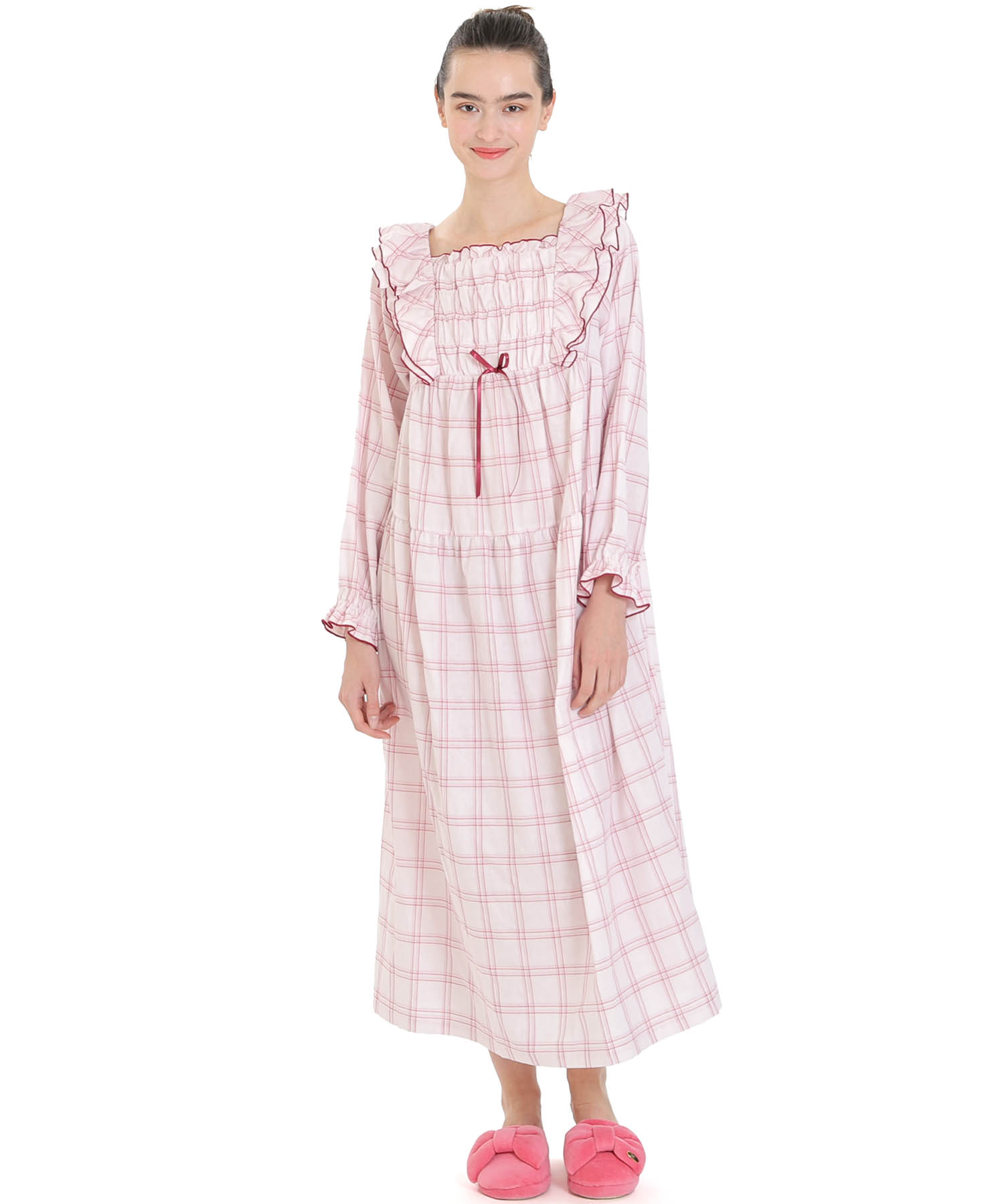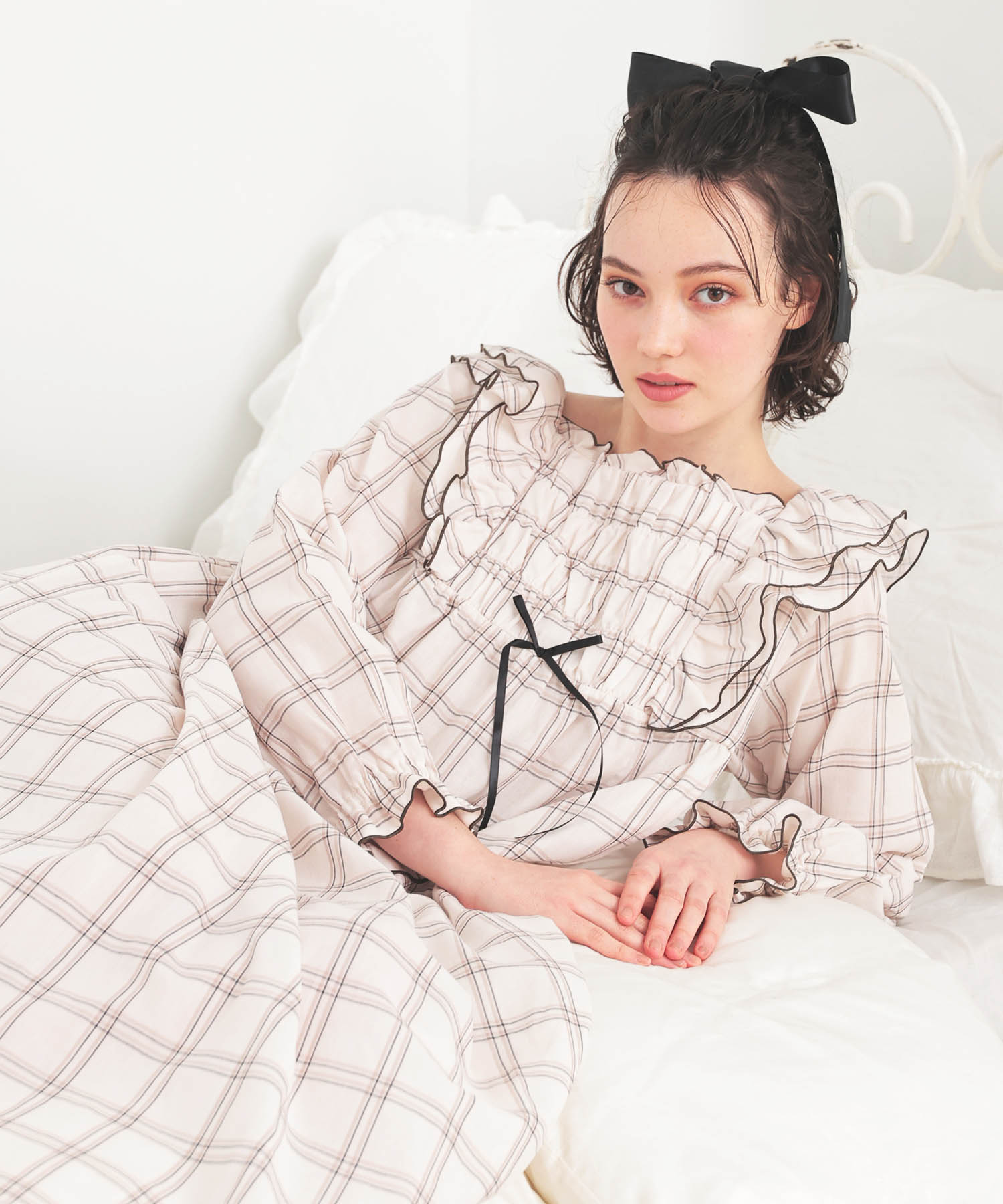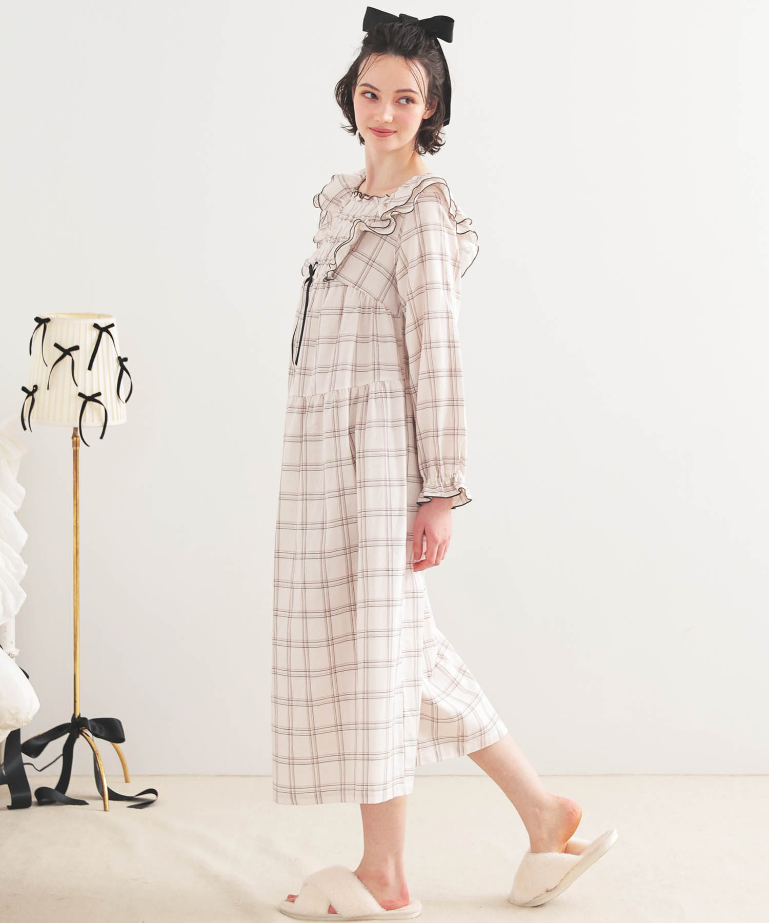 ギャザーやフリルをあしらった可愛いルームドレス。