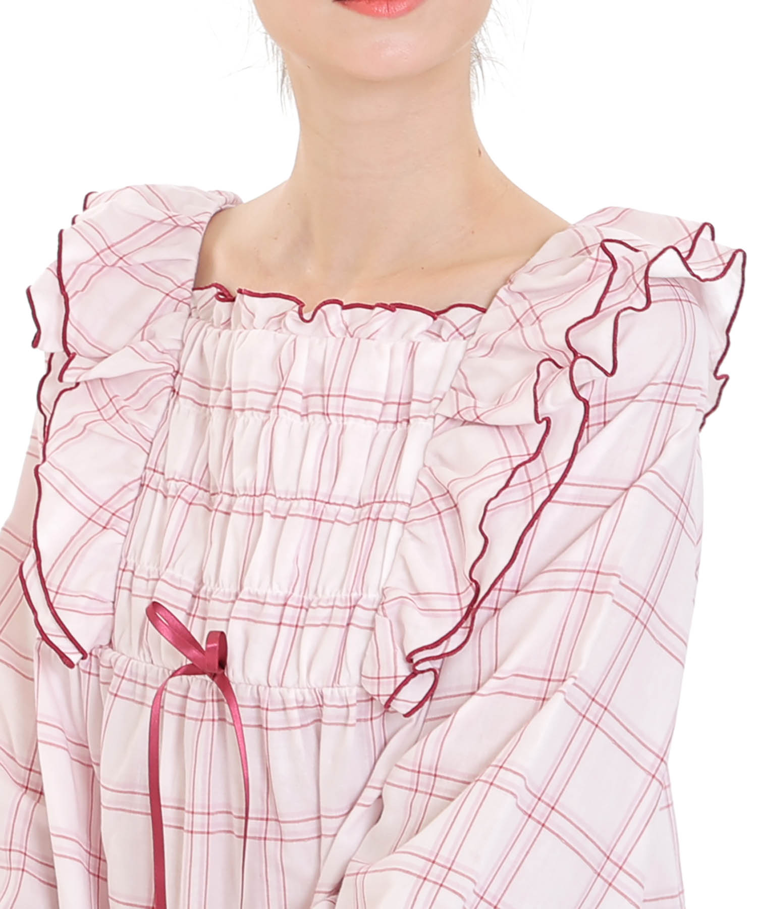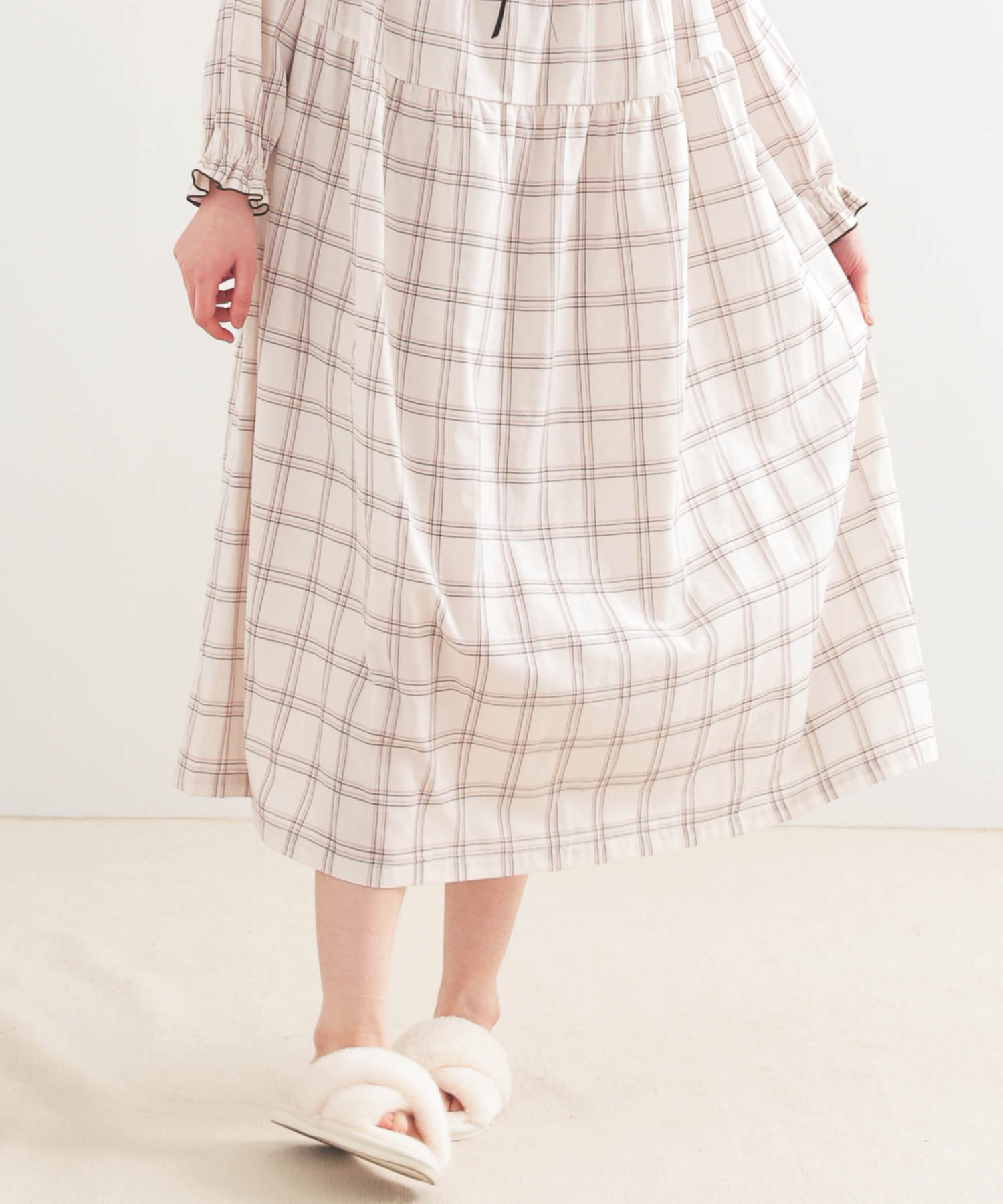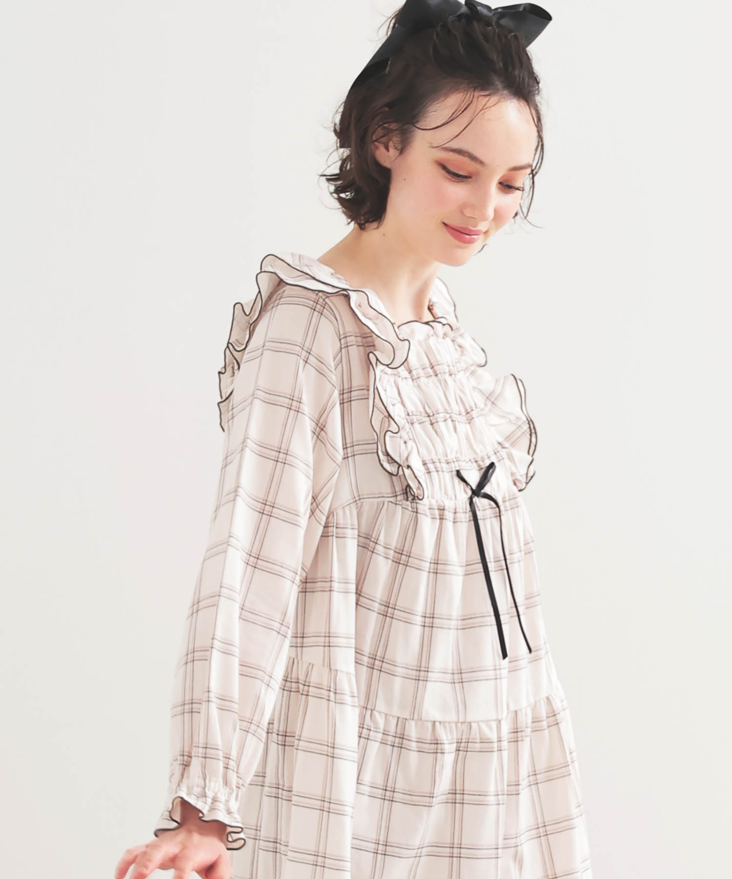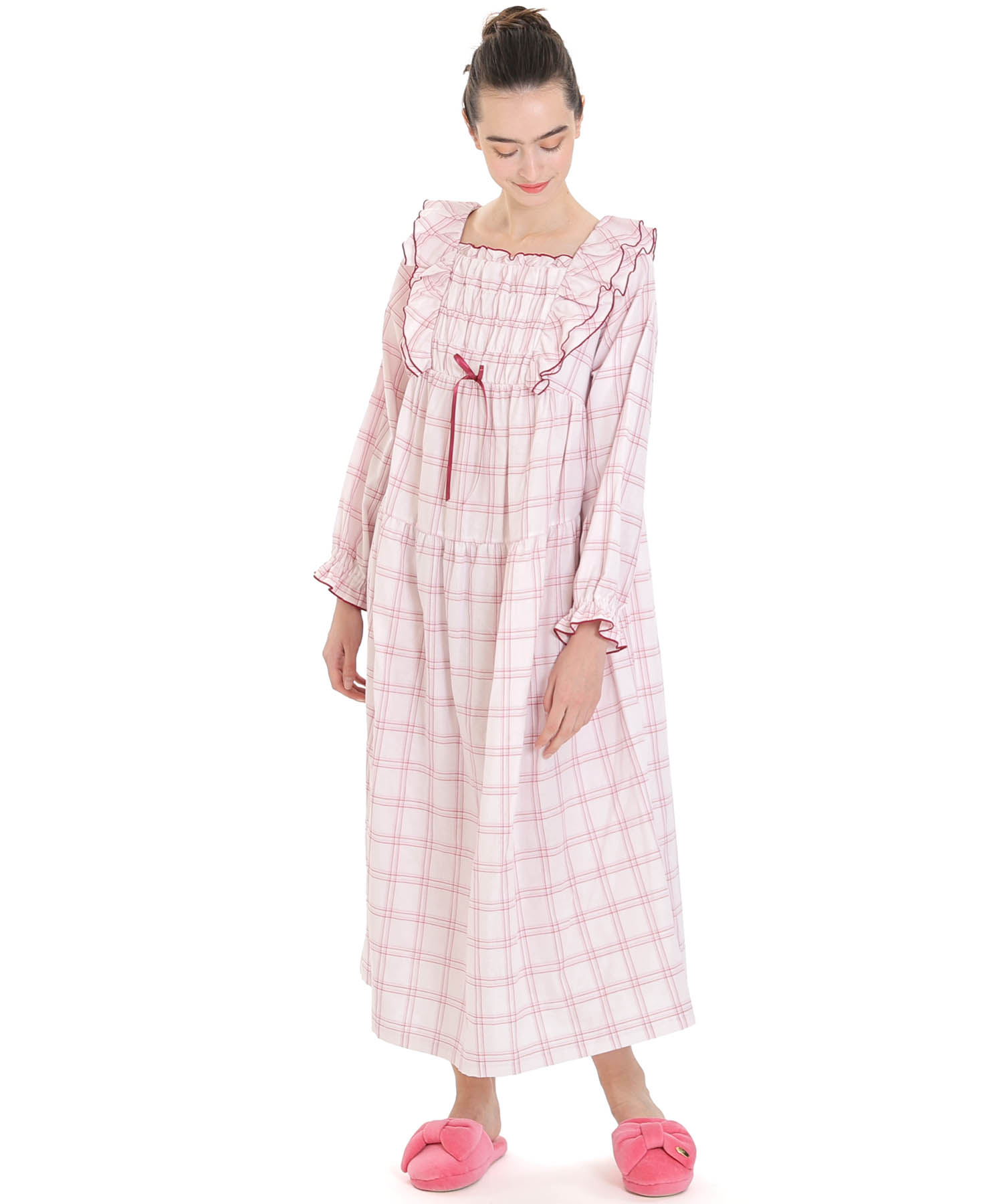 ギャザーやフリルをあしらった可愛いルームドレス。