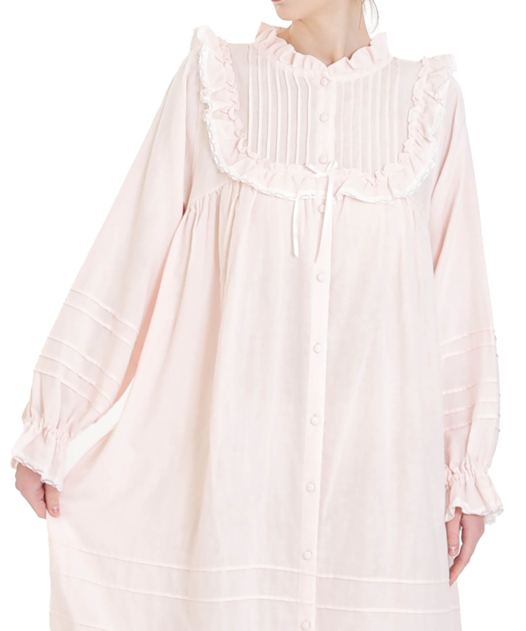 ヨーク、袖、裾にピンタックを贅沢にあしらったナイトドレス。