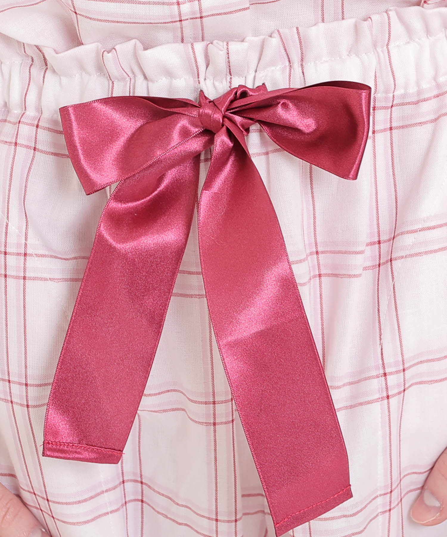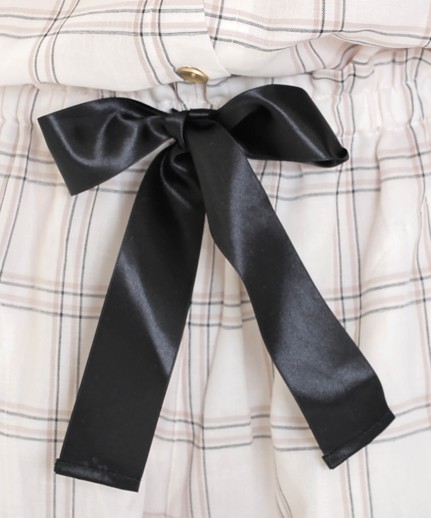 トップスをインしても可愛い光沢感が綺麗なサテンリボン付き。