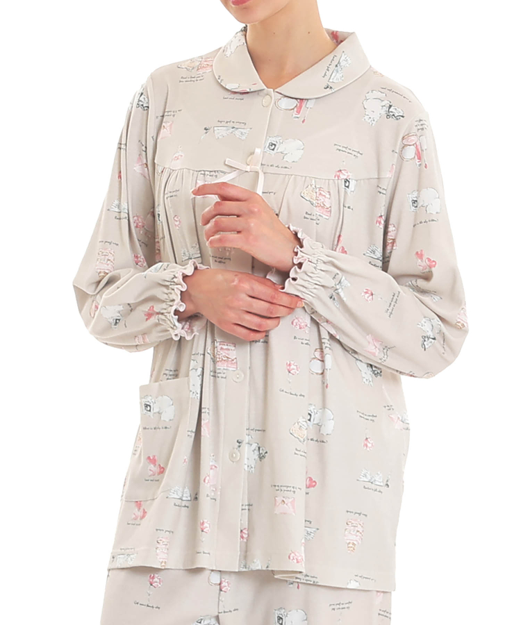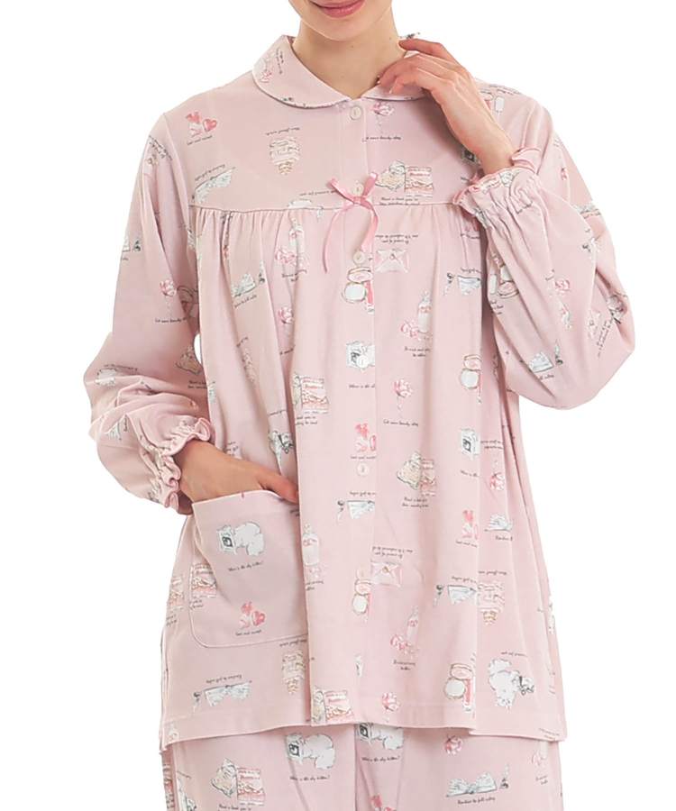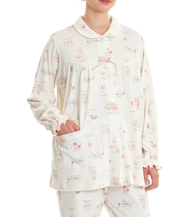 ゆったりシルエットが魅力の前開きのパジャマ。