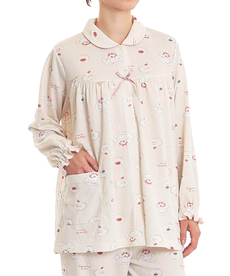 やわらかなタッチで描いた、スイーツ柄のパジャマ。