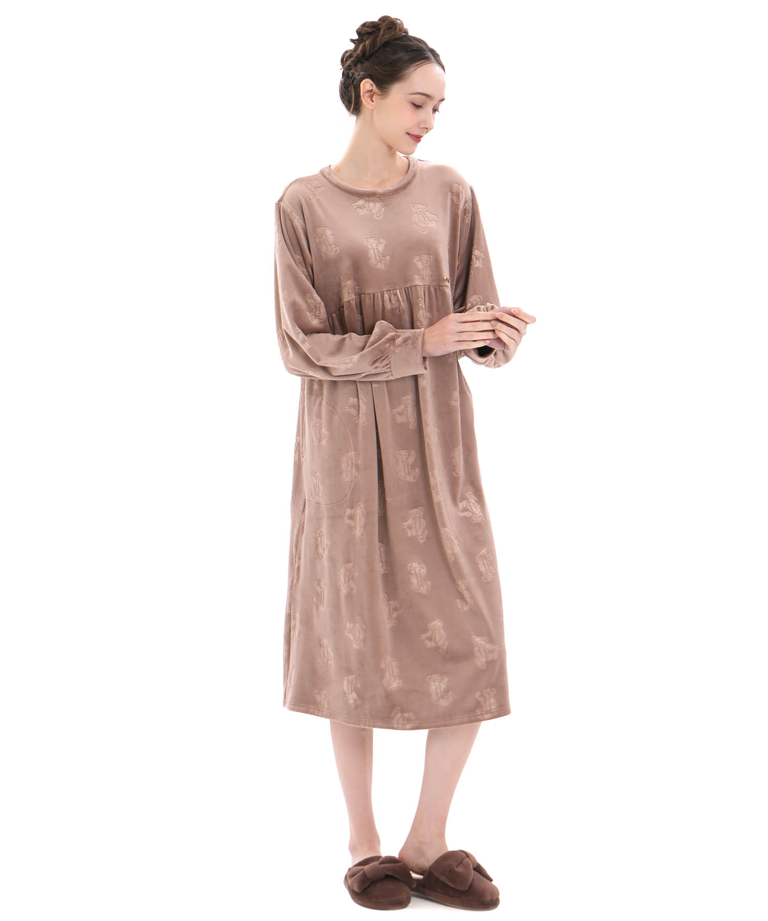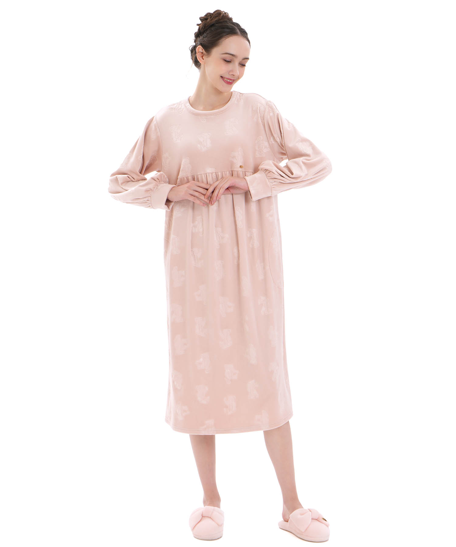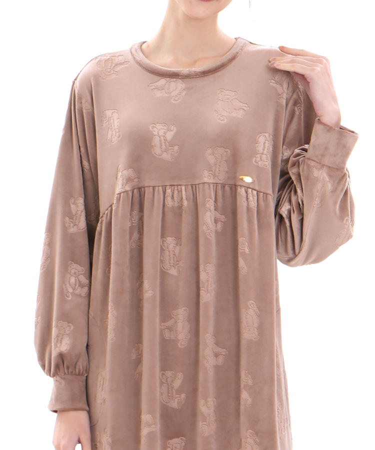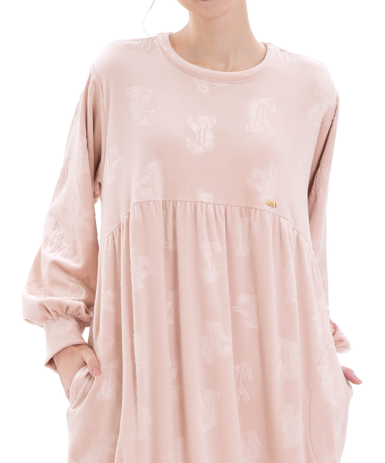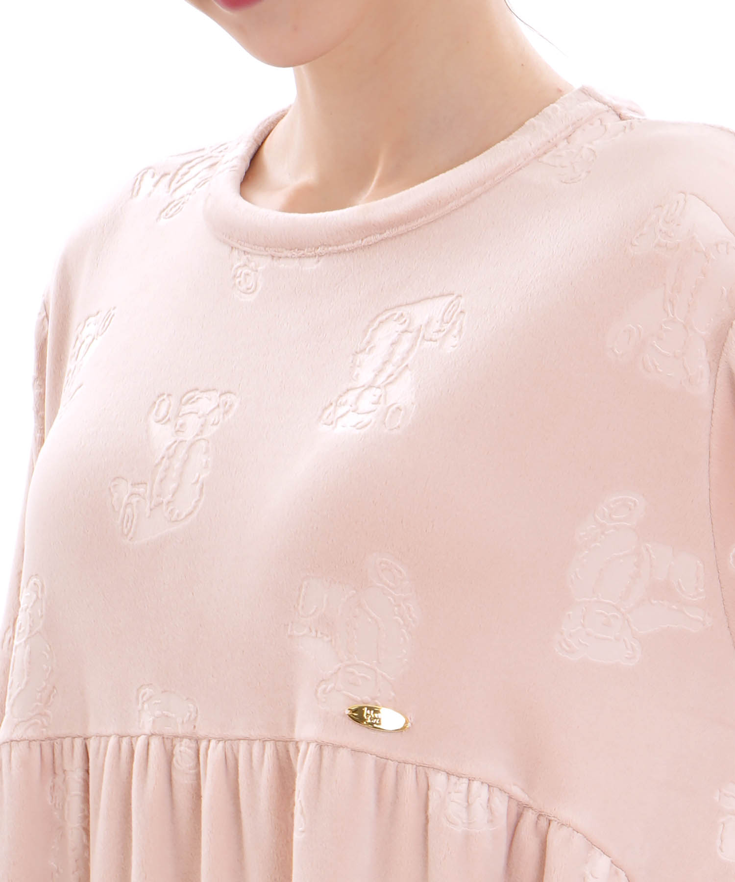 胸元の切り替えでギャザーをたっぷりと寄せ、カラダのラインを拾わないゆったりとしたシルエットに。