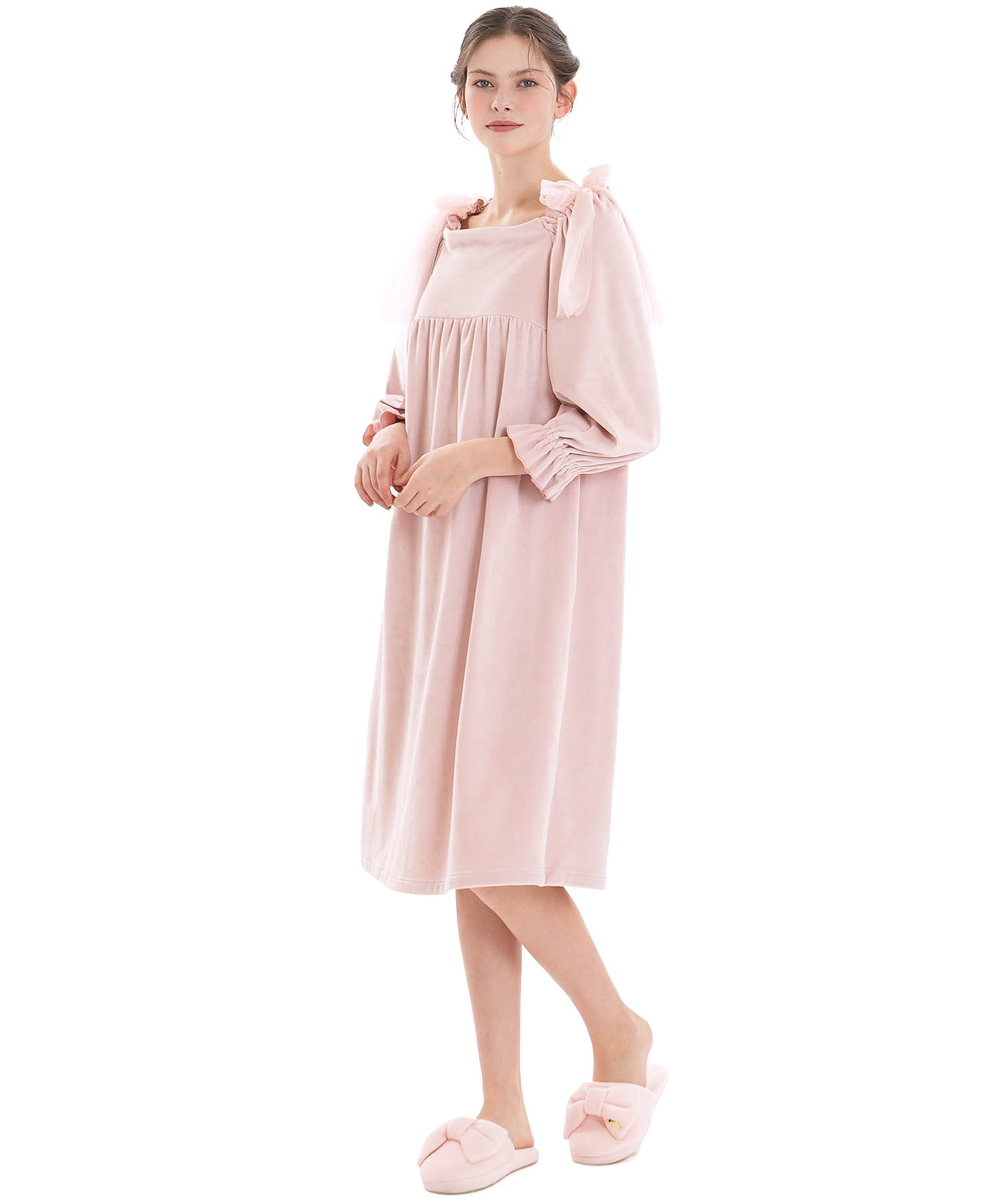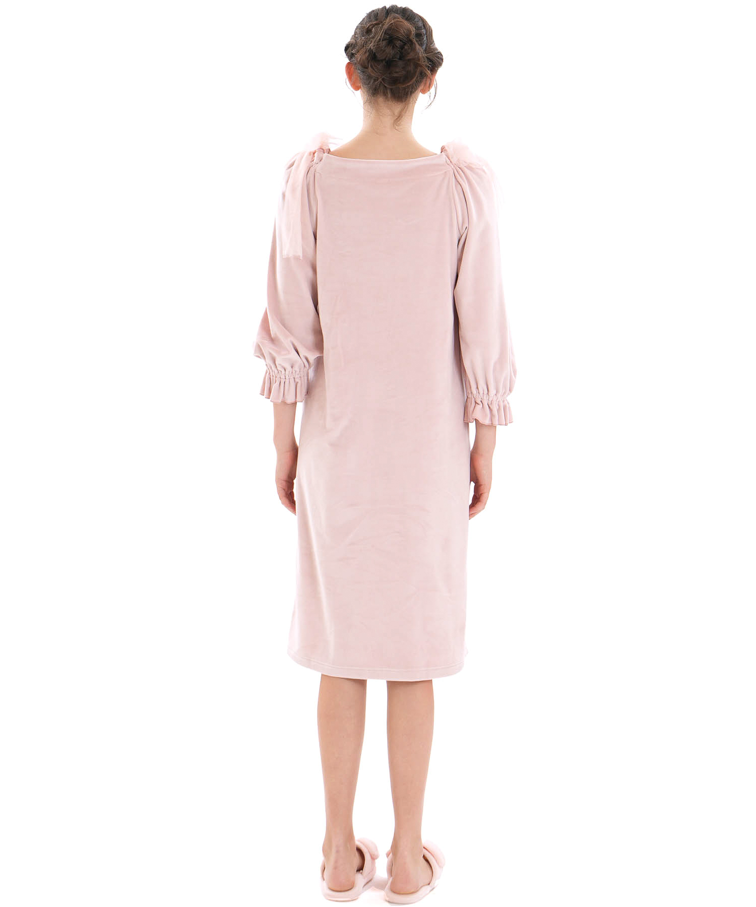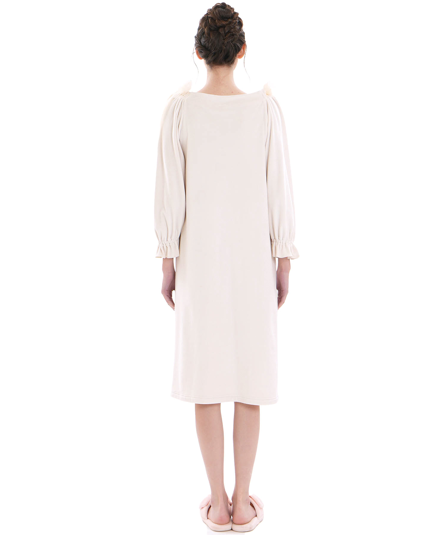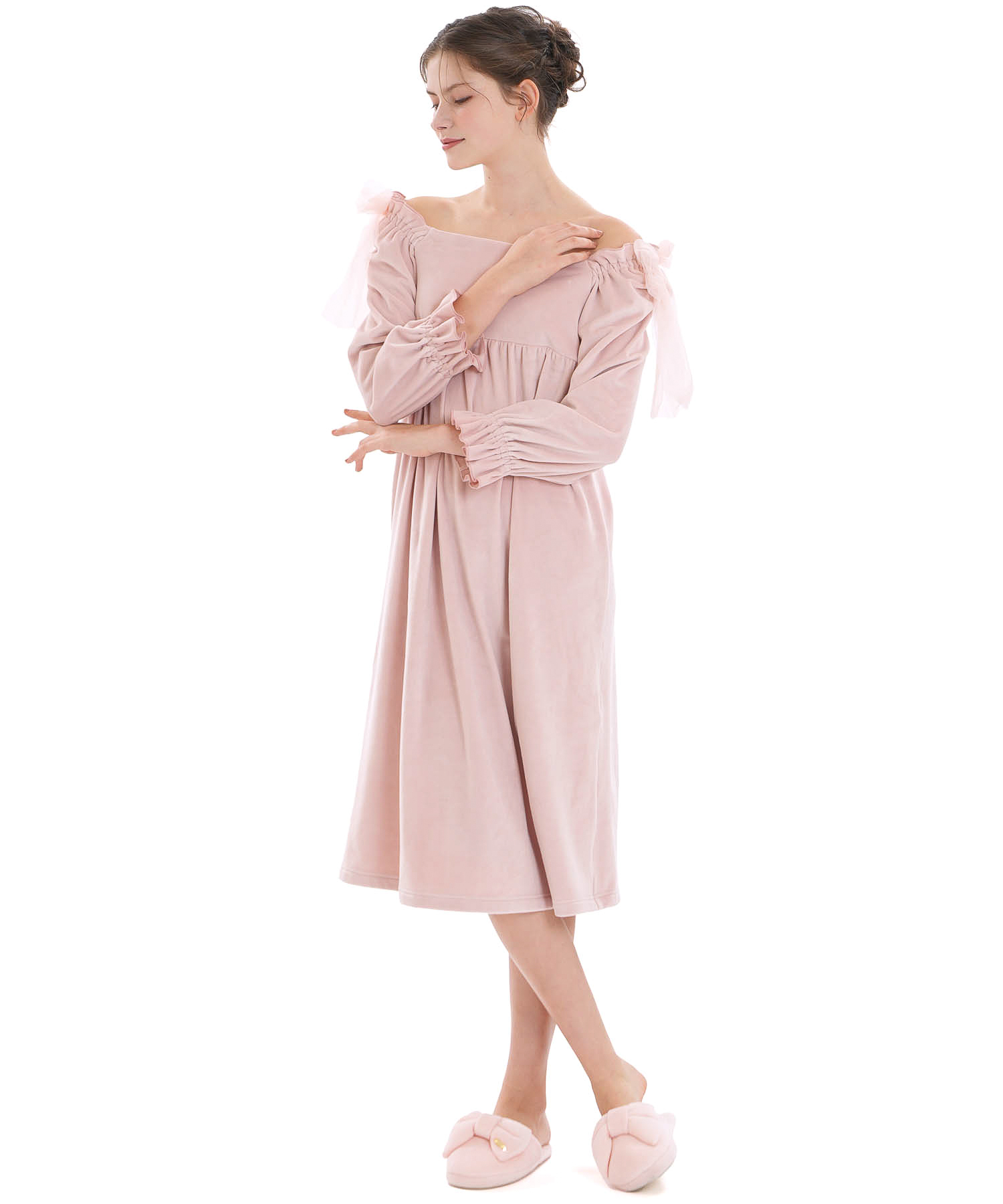 肩の大きなチュールリボンは顔まわりを明るくしてくれ、華やかな印象に。