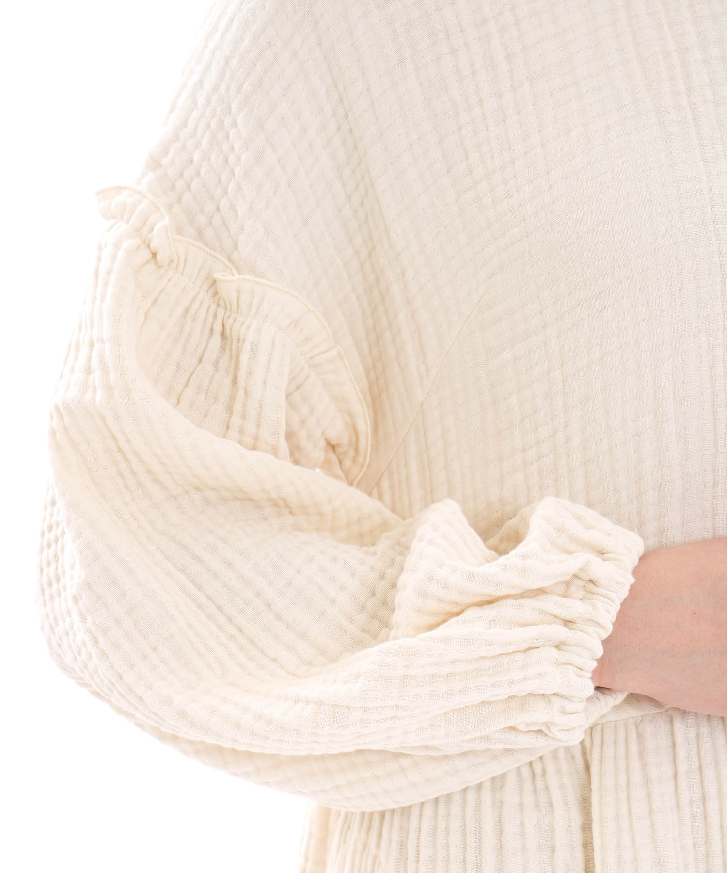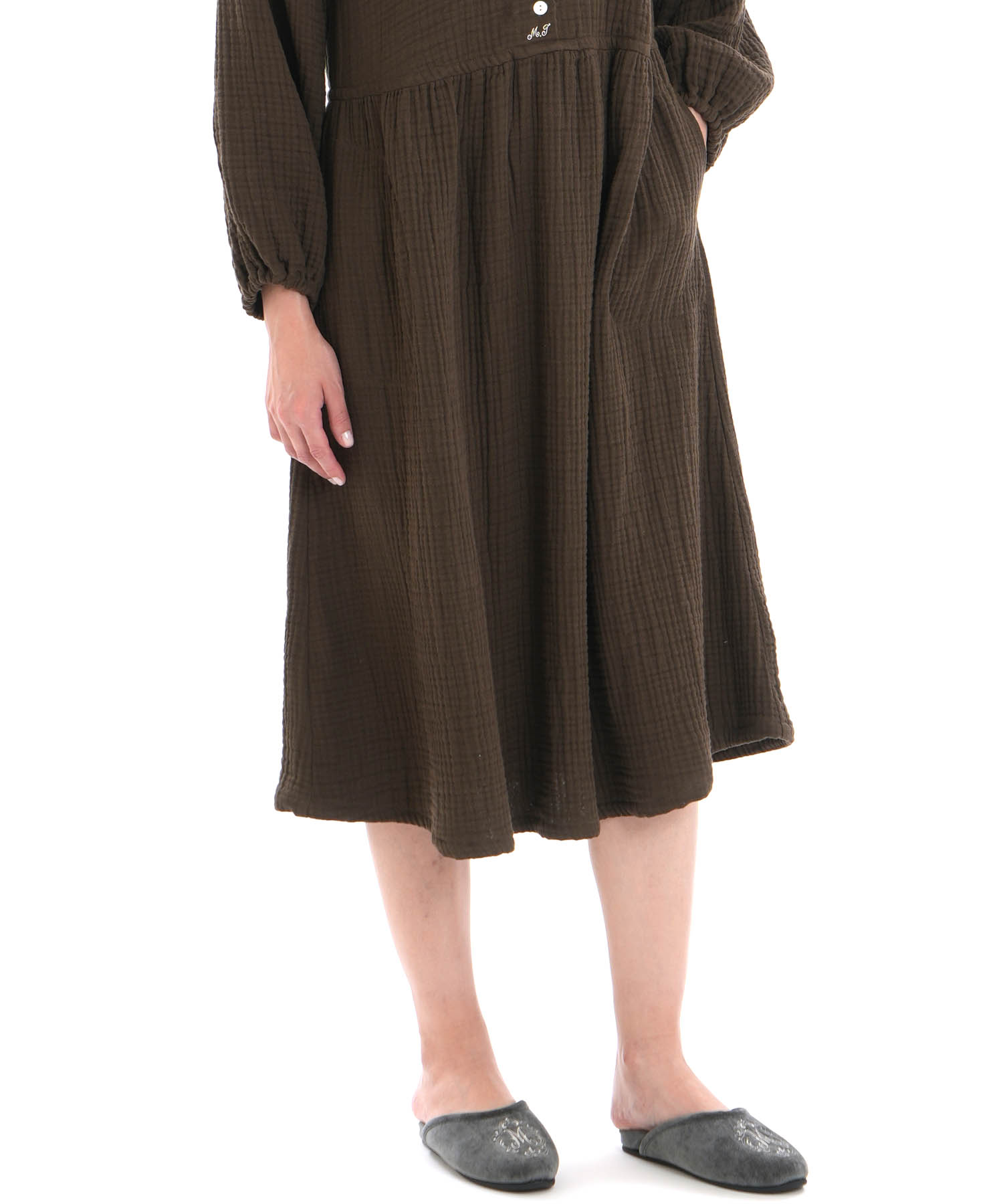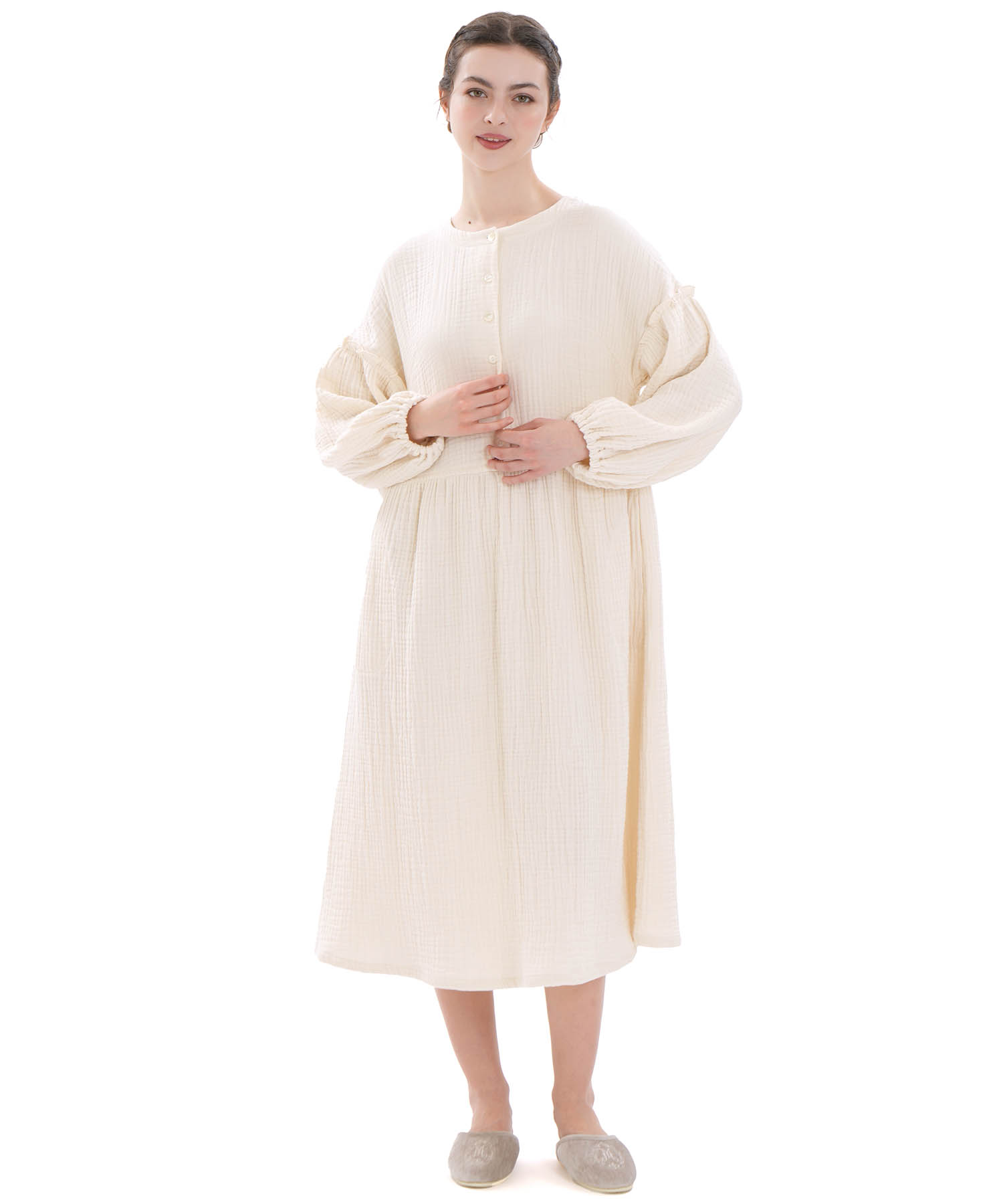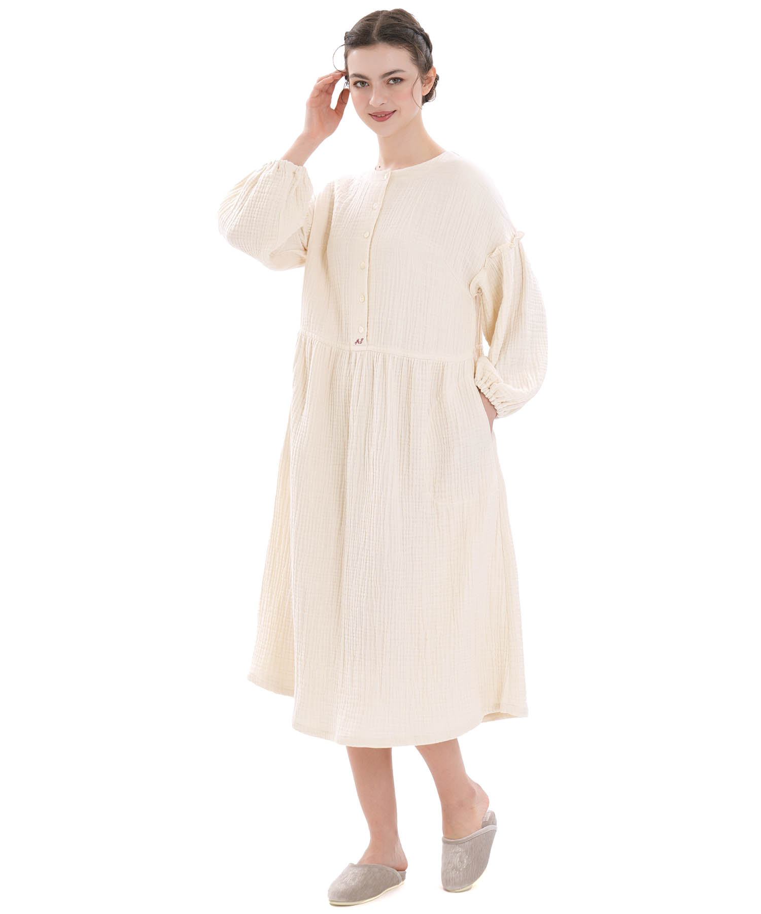 柔らかな肌ざわりのシュークリームガーゼ®4+(フォープラス)を使用した、着心地のよいルームドレス。