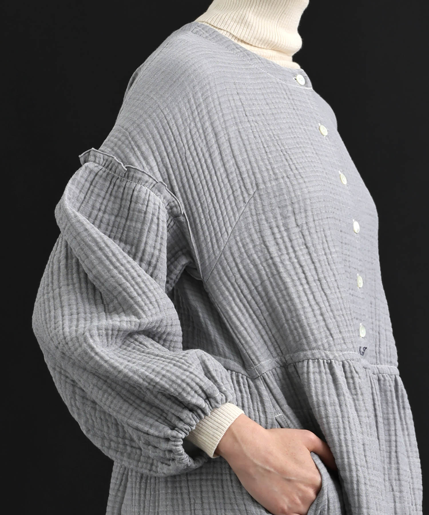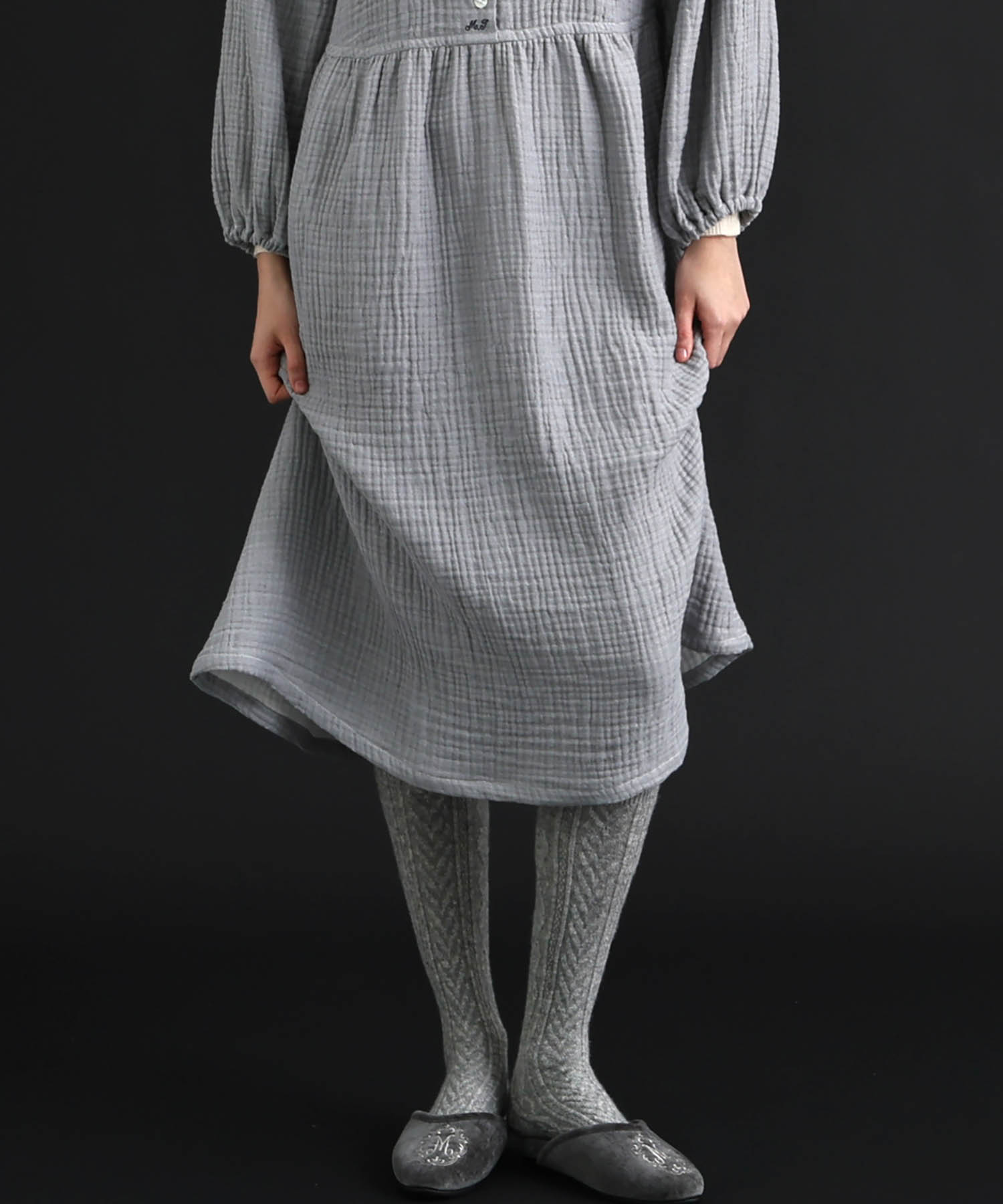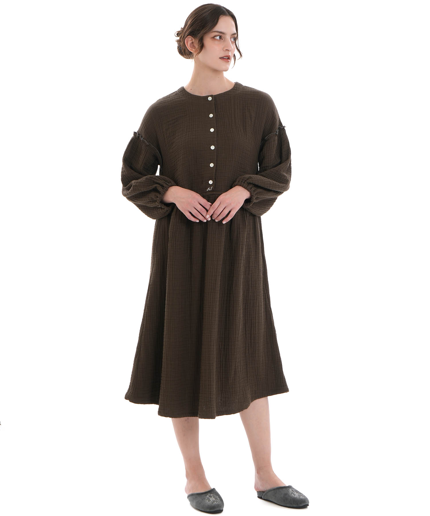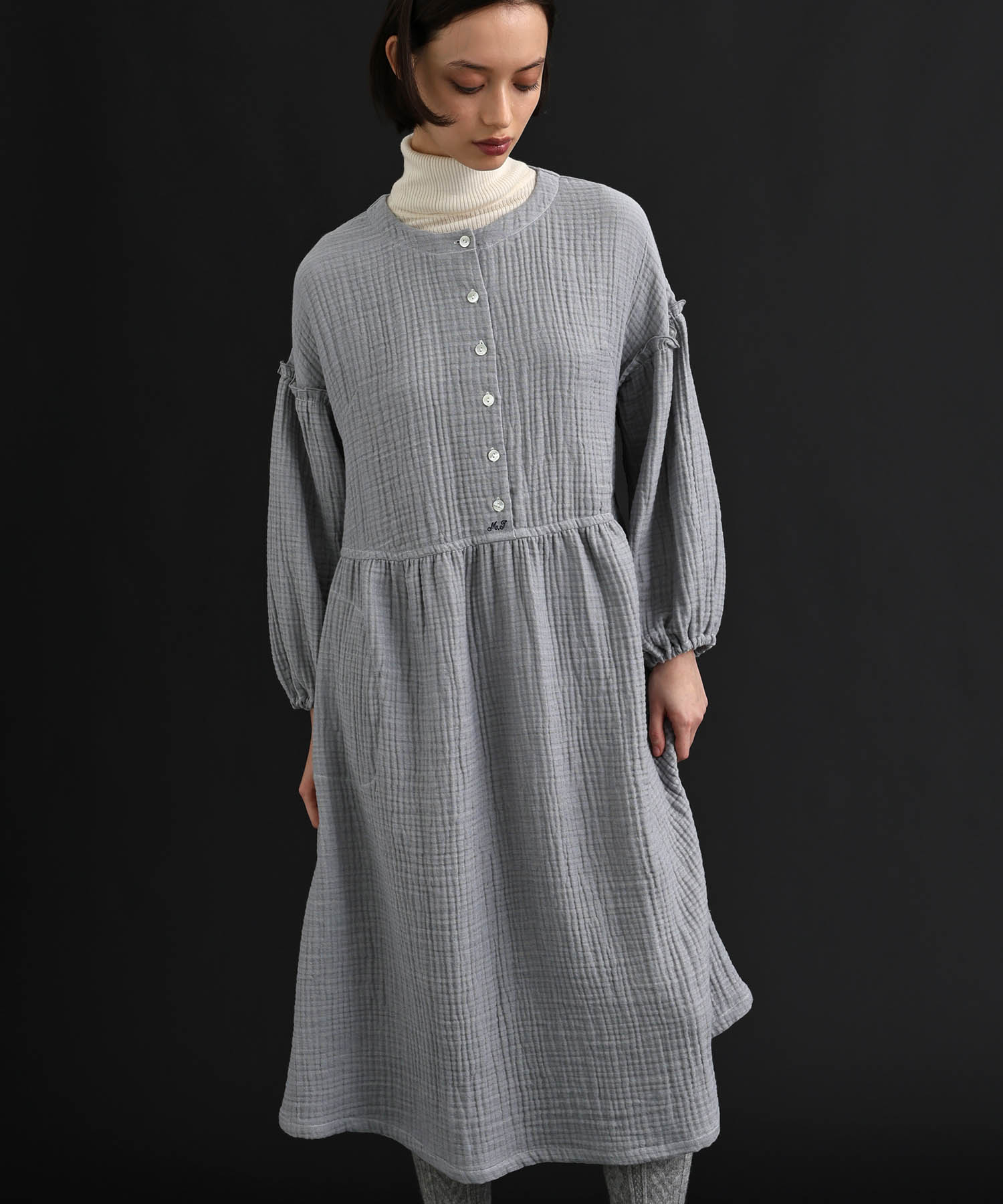 柔らかな肌ざわりのシュークリームガーゼ®4+(フォープラス)を使用した、着心地のよいルームドレス。