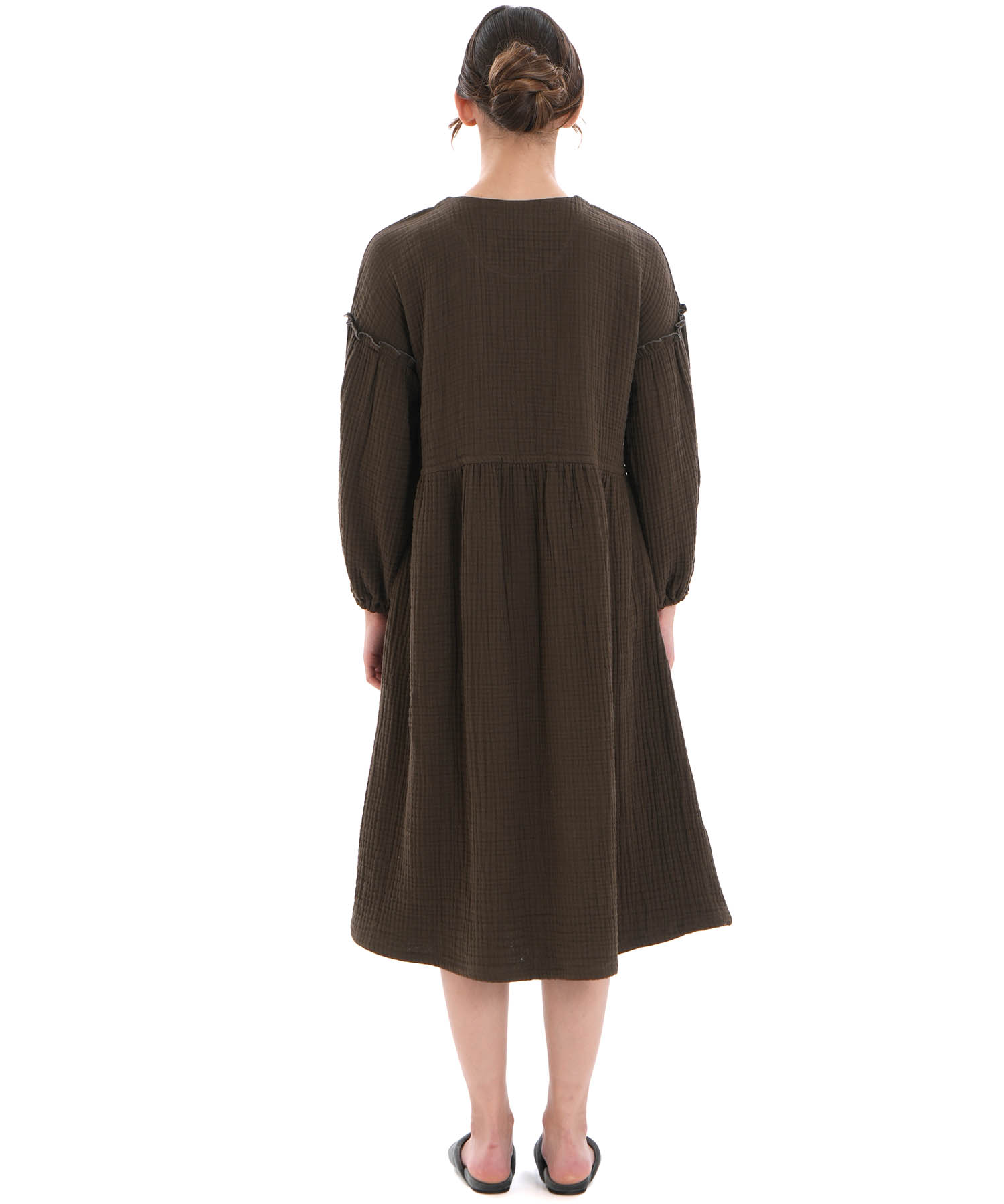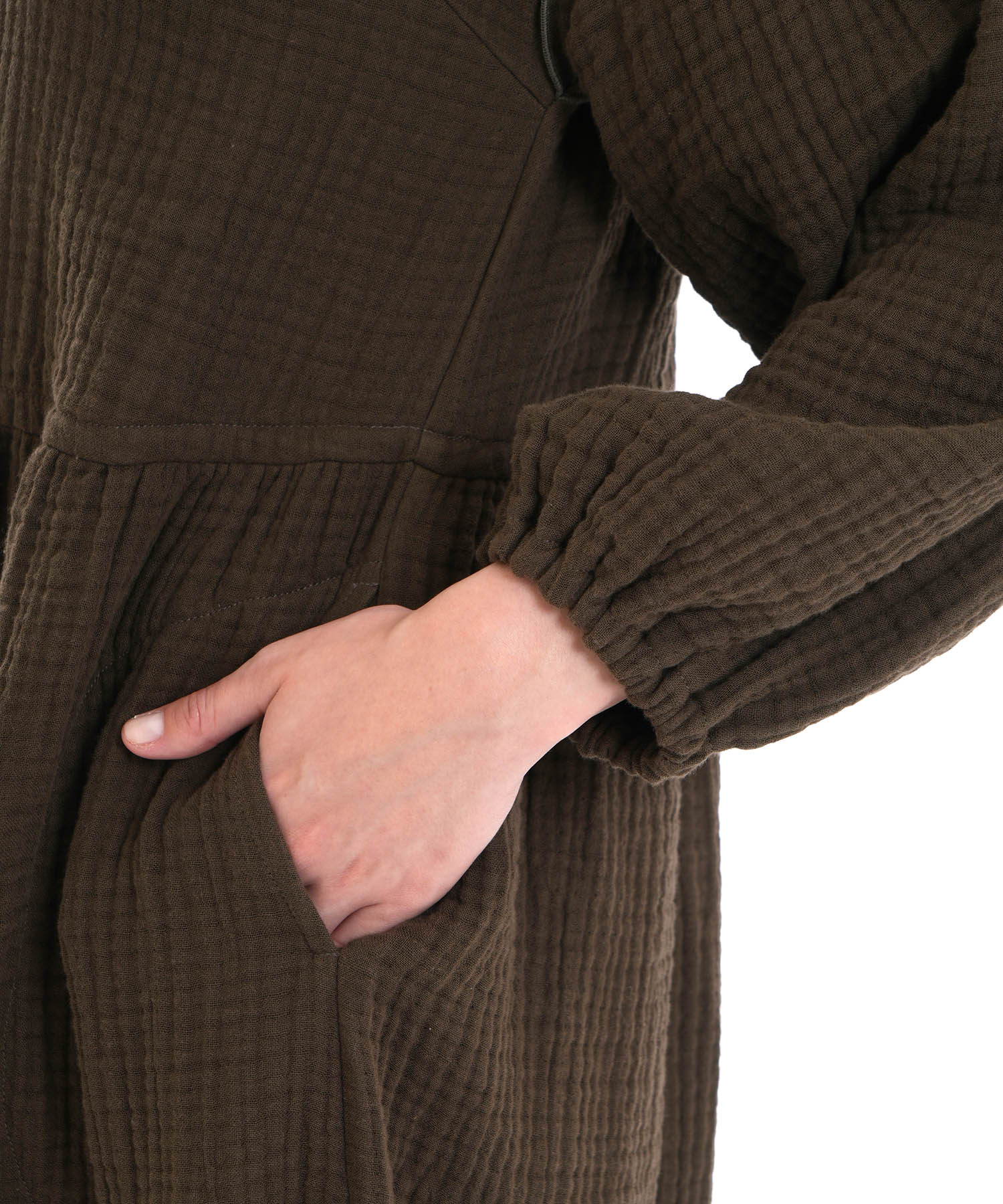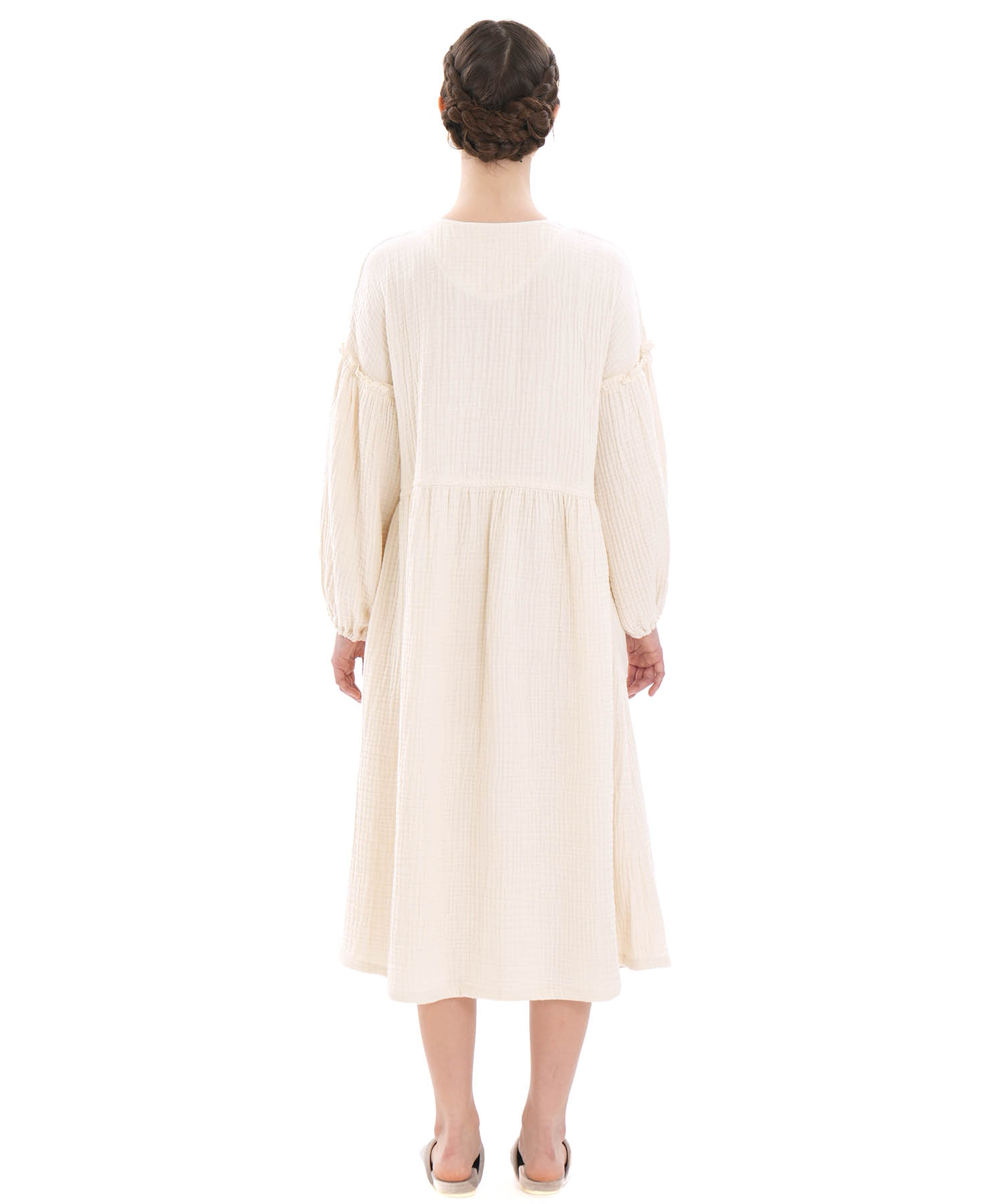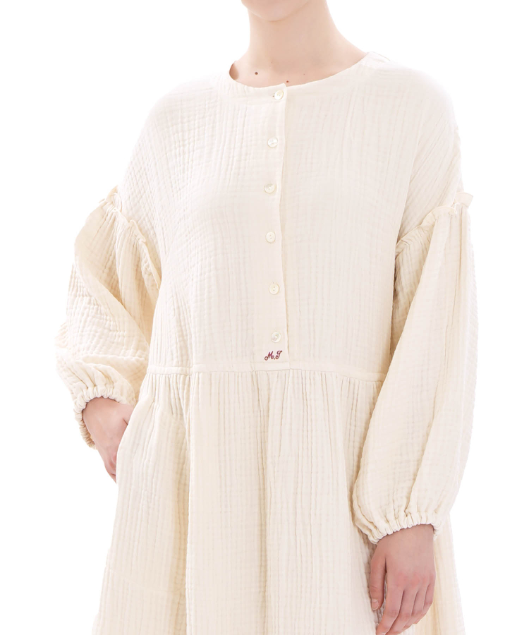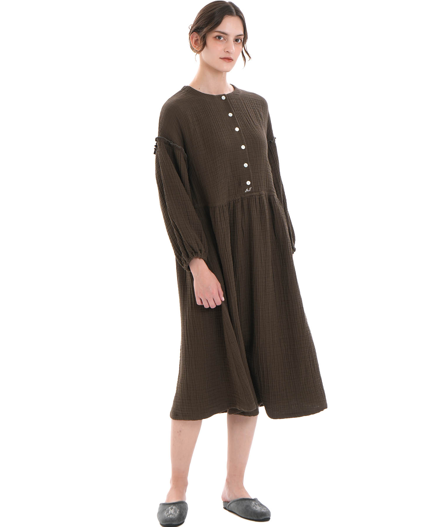 柔らかな肌ざわりのシュークリームガーゼ®4+(フォープラス)を使用した、着心地のよいルームドレス。