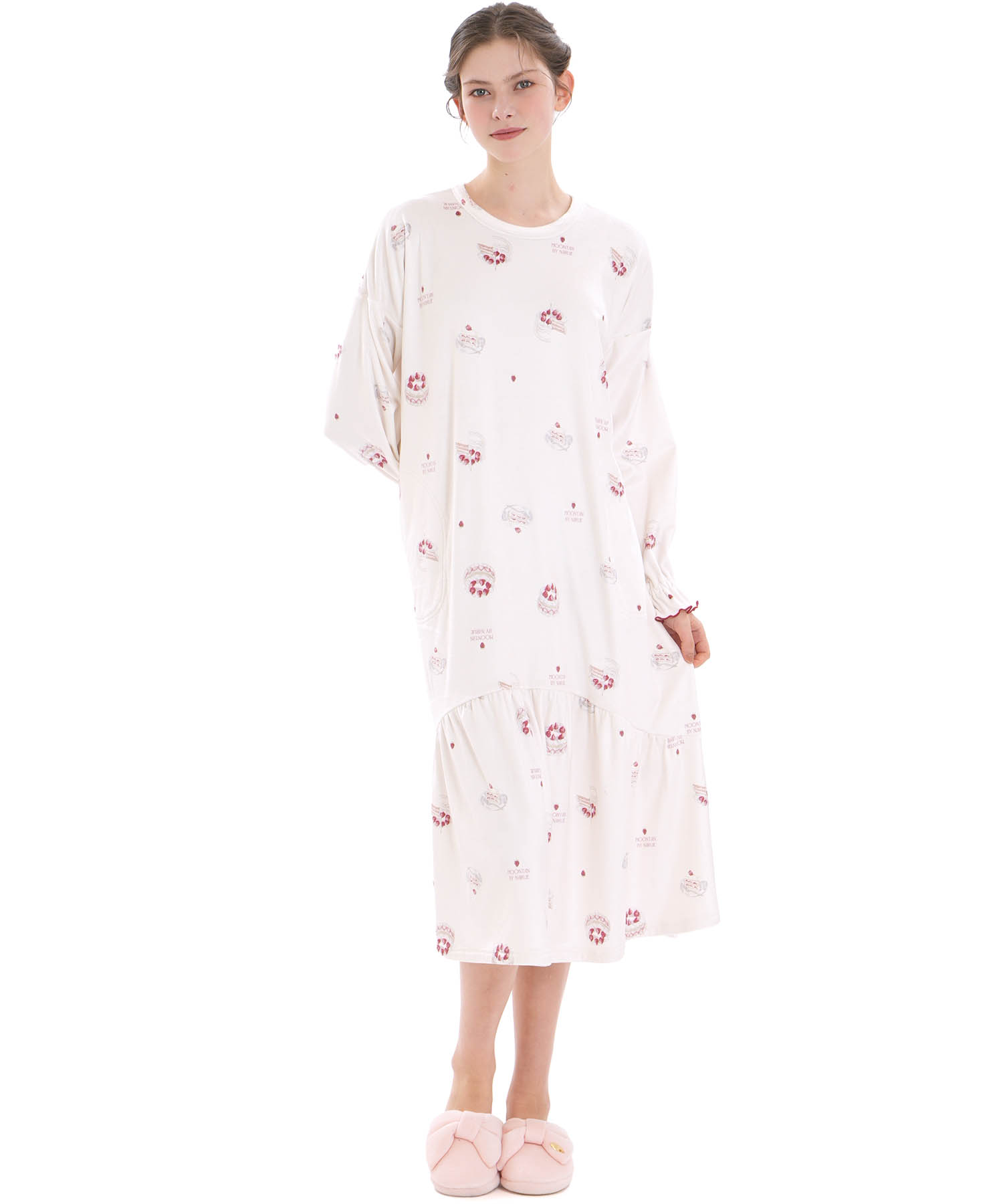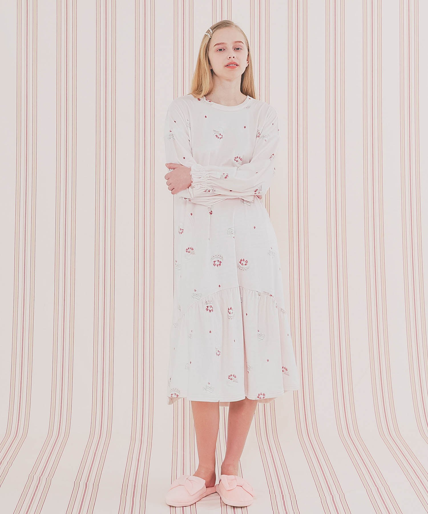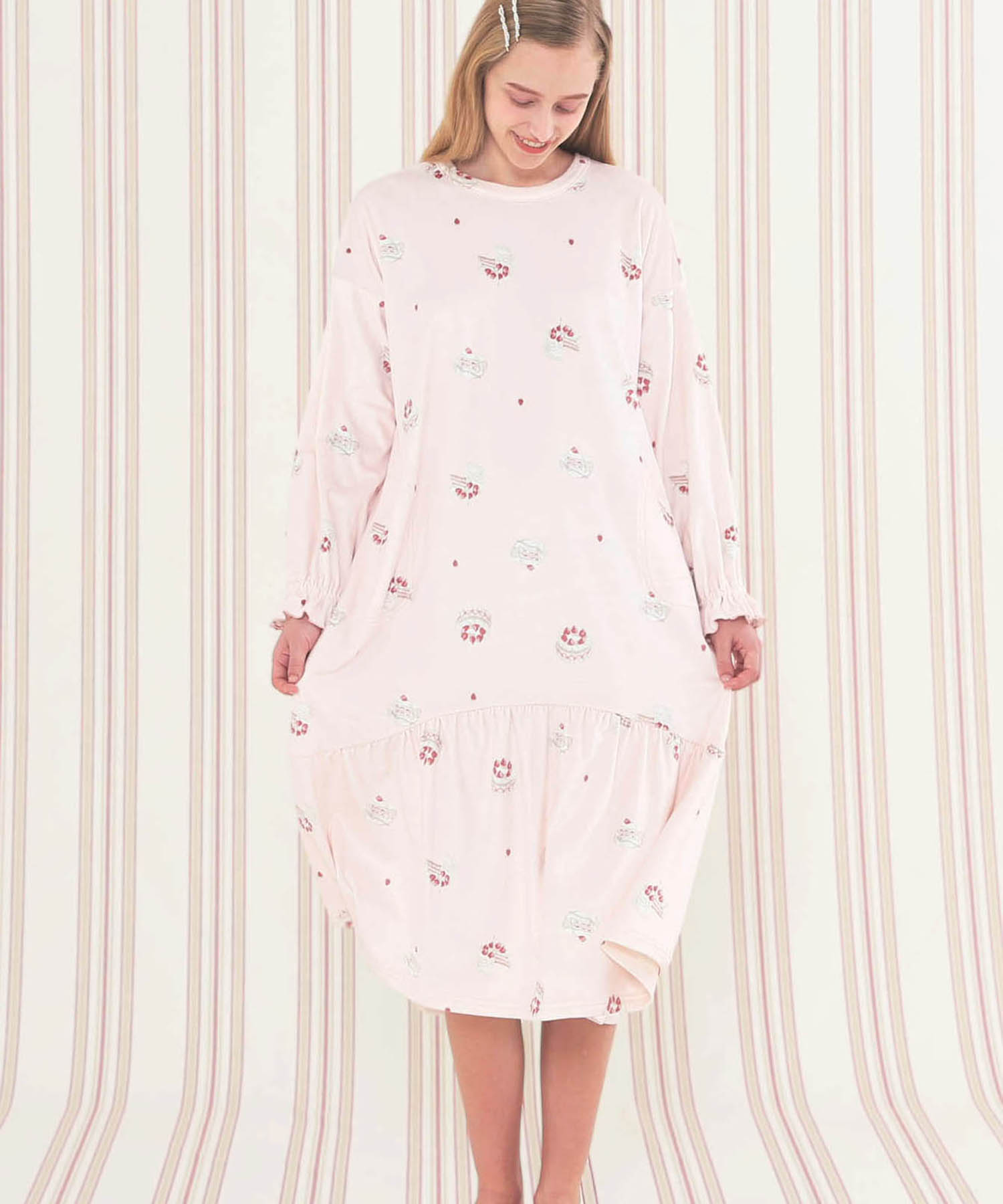 裾へ広がるAラインシルエットでお腹周りがゆったりとしたワンピース。