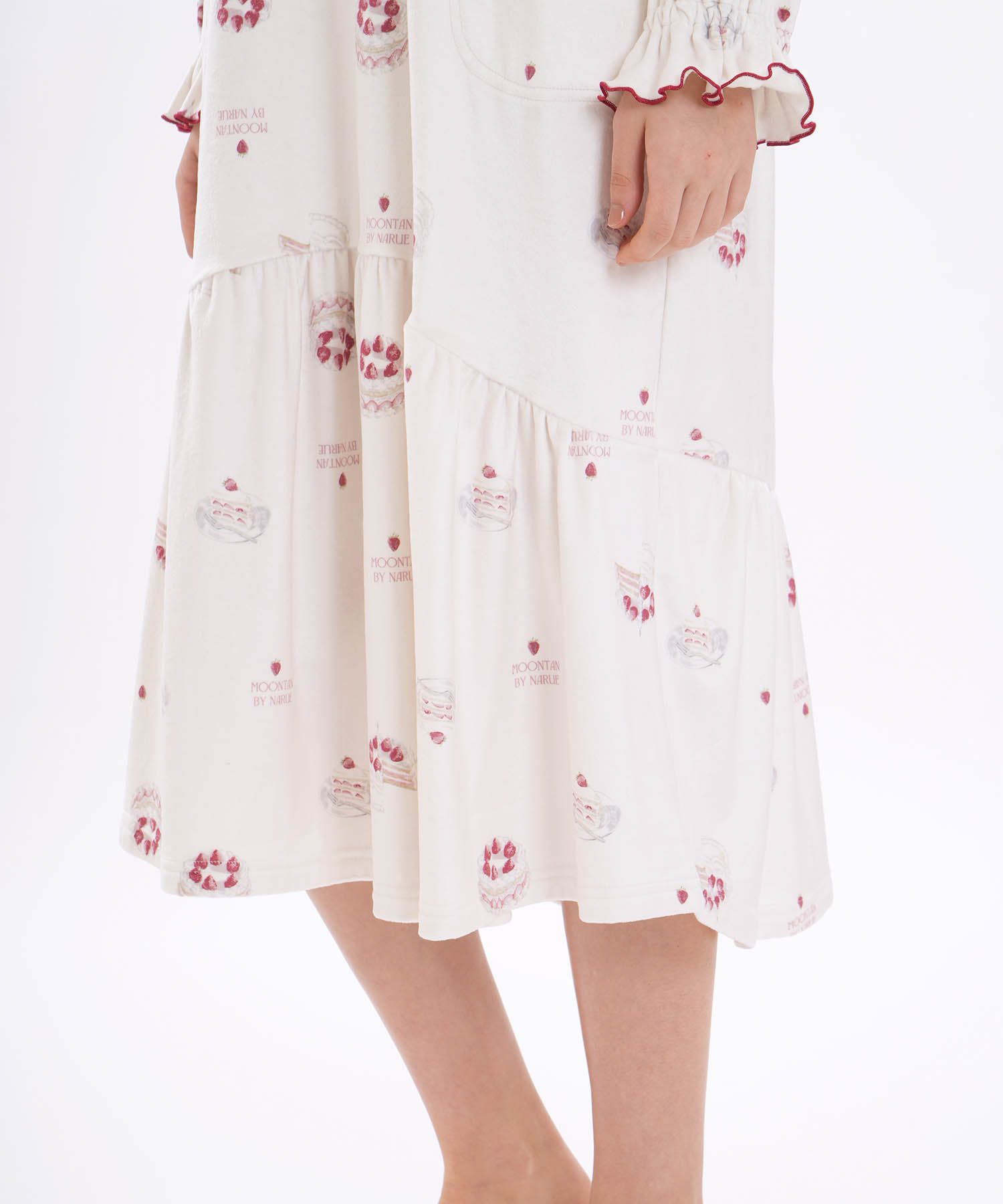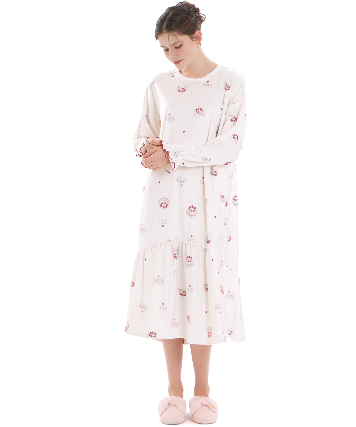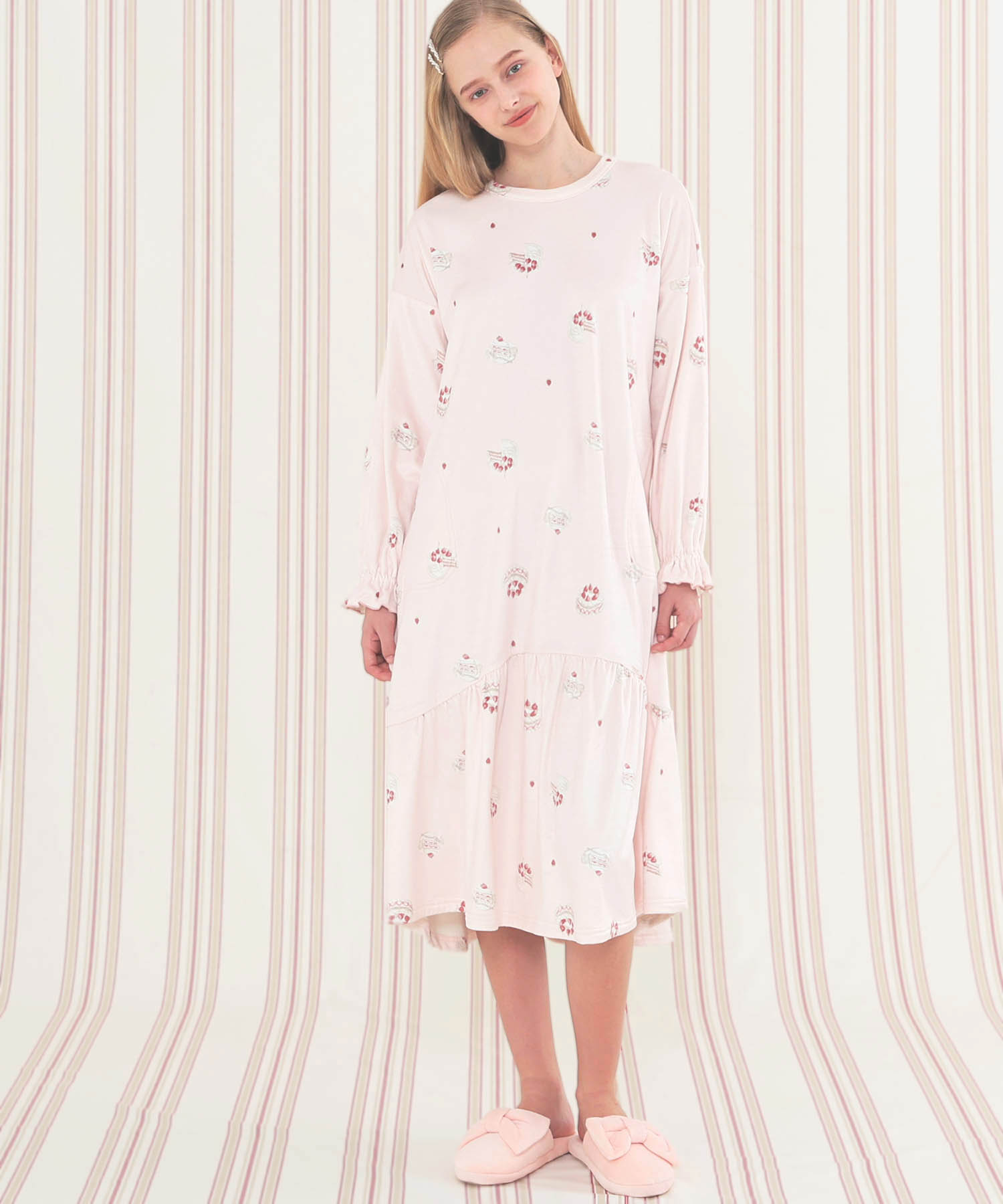 裾へ広がるAラインシルエットでお腹周りがゆったりとしたワンピース。