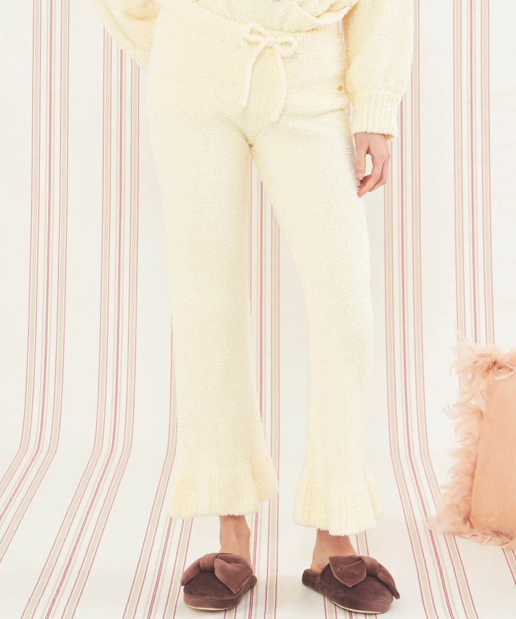 裾のフリルがかわいいフレアパンツ。