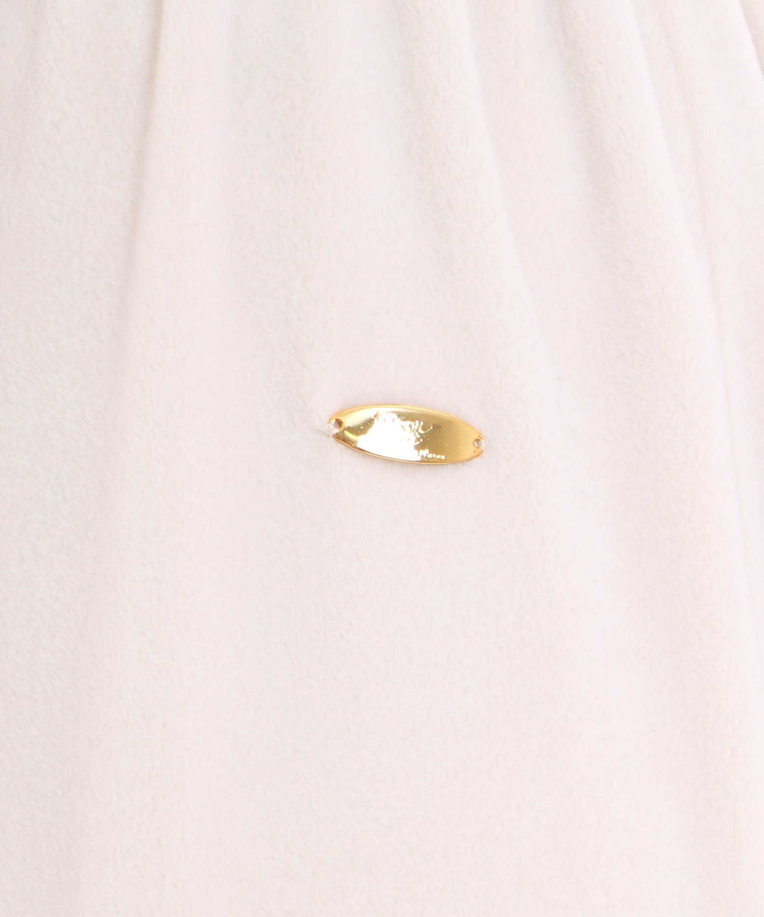 ゴールドのブランドプレート、ウエストのリボン、ヒップをカバーしてくれるアウトポケットがさりげないディテールとして全体に品のよさを添え、洗練されたリラックスタイムを演出します。