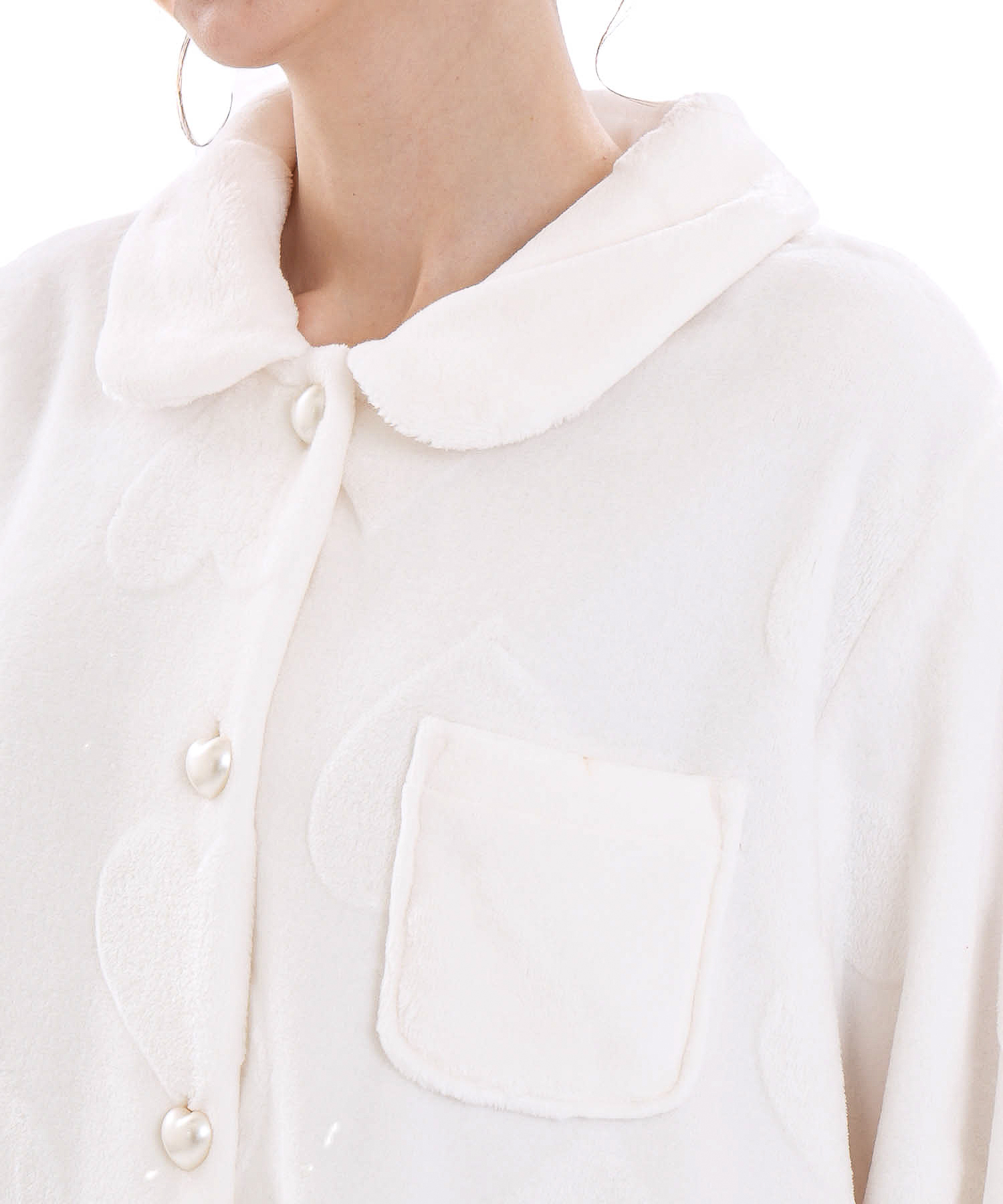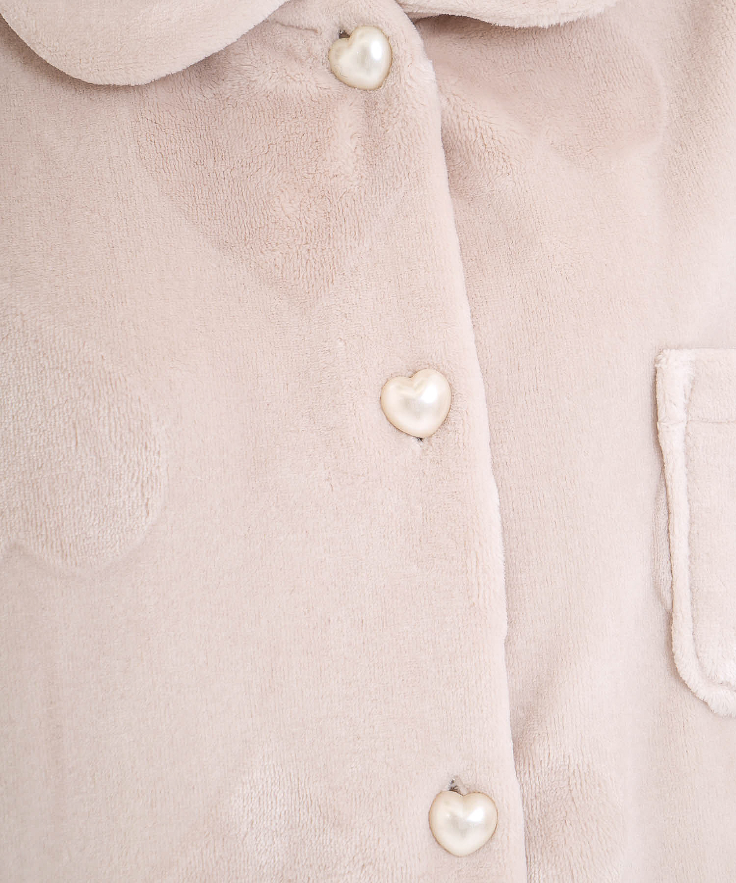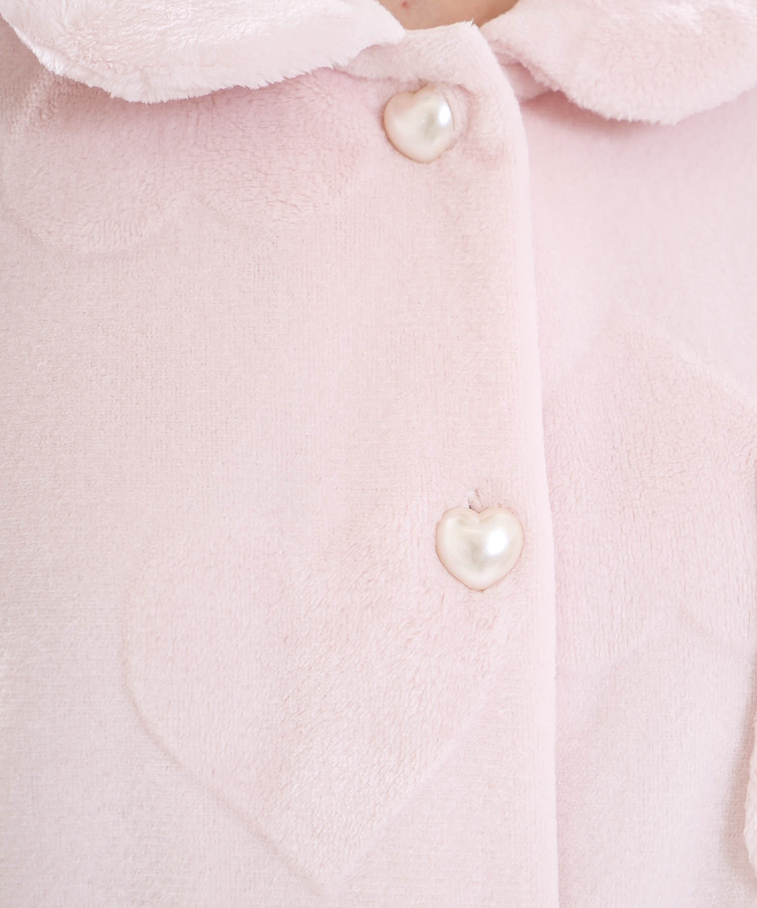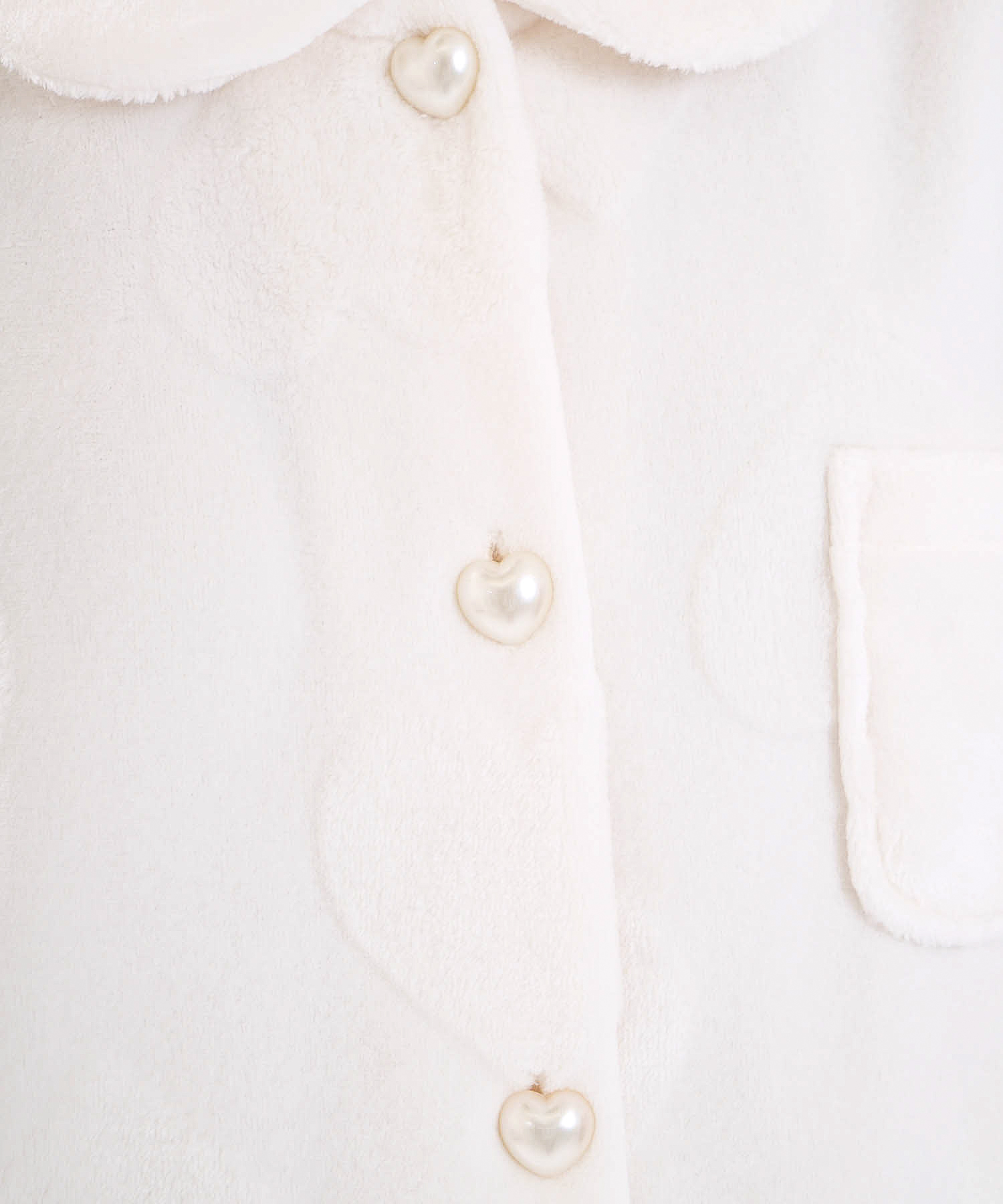 ボタンは優しい光沢感のあるパールのハートボタン。上品さが引き立ち、魅力的な一着です。