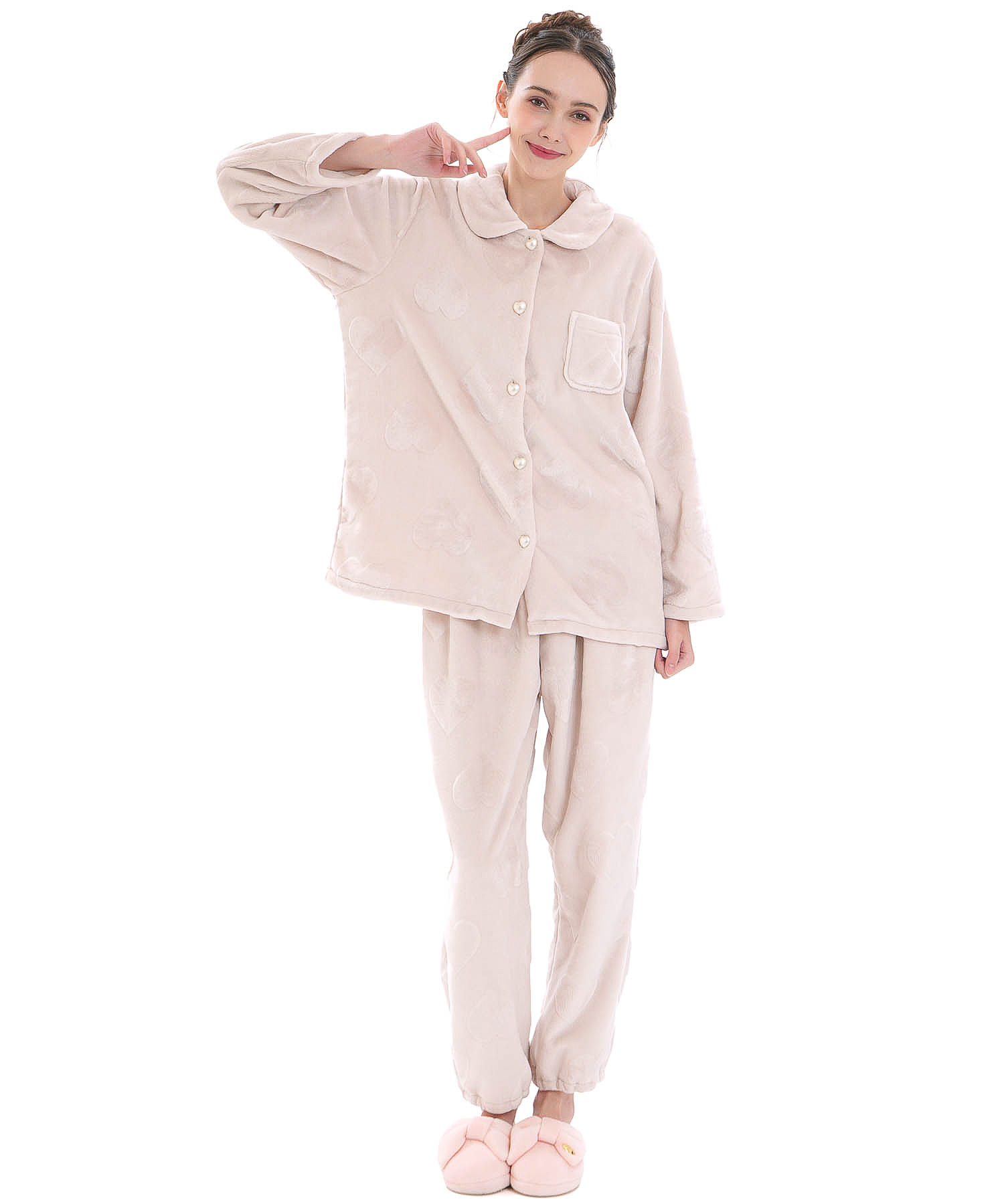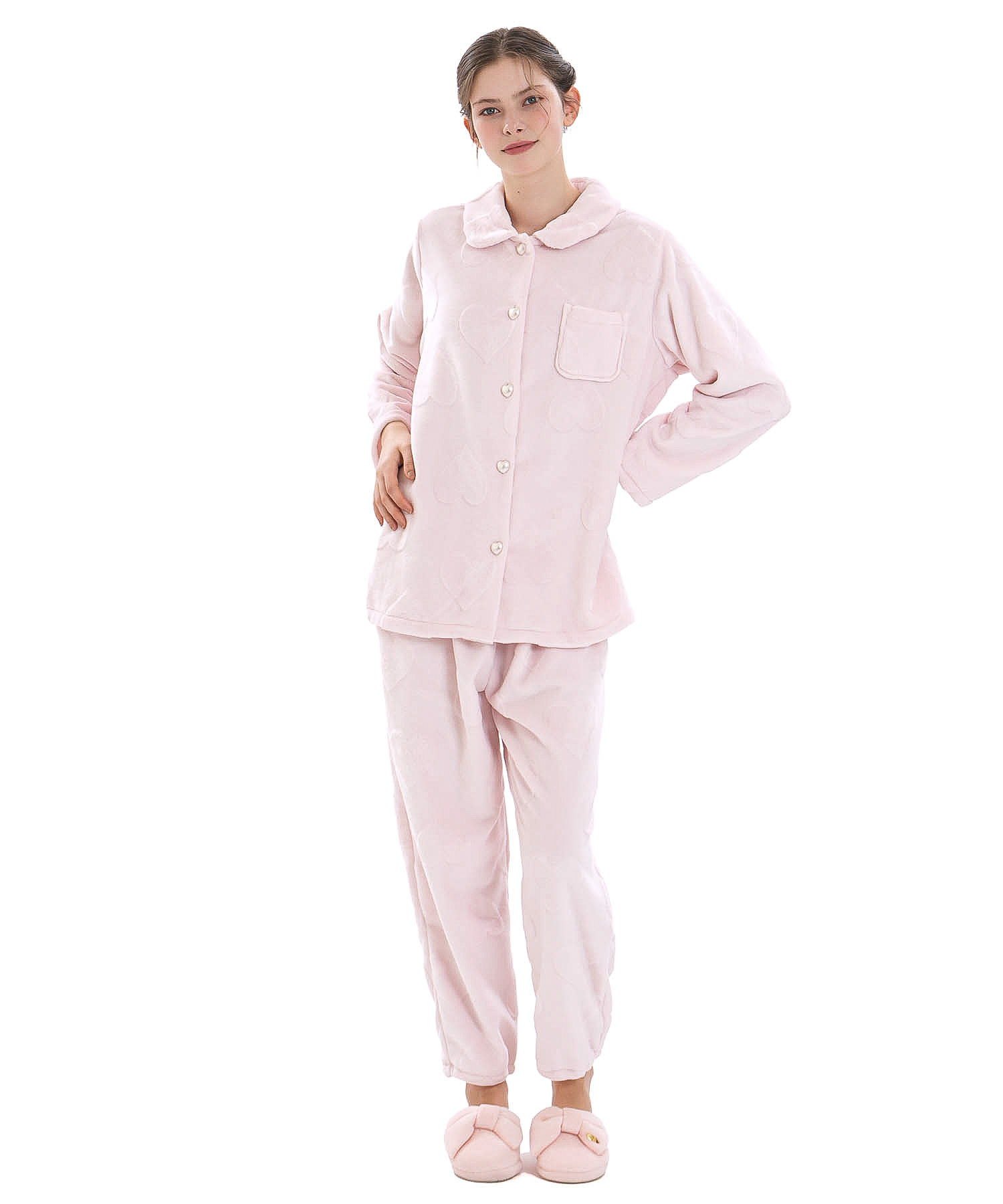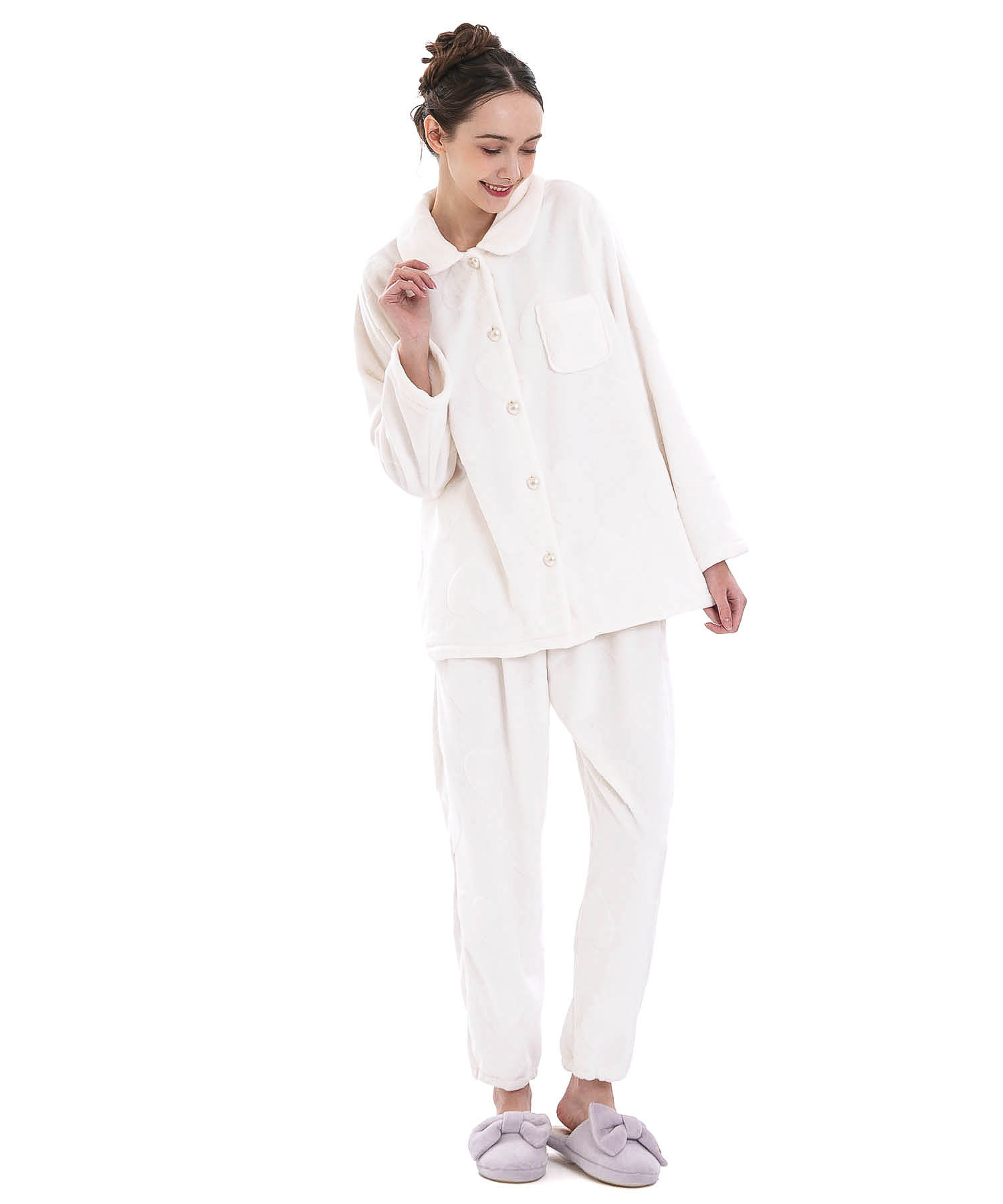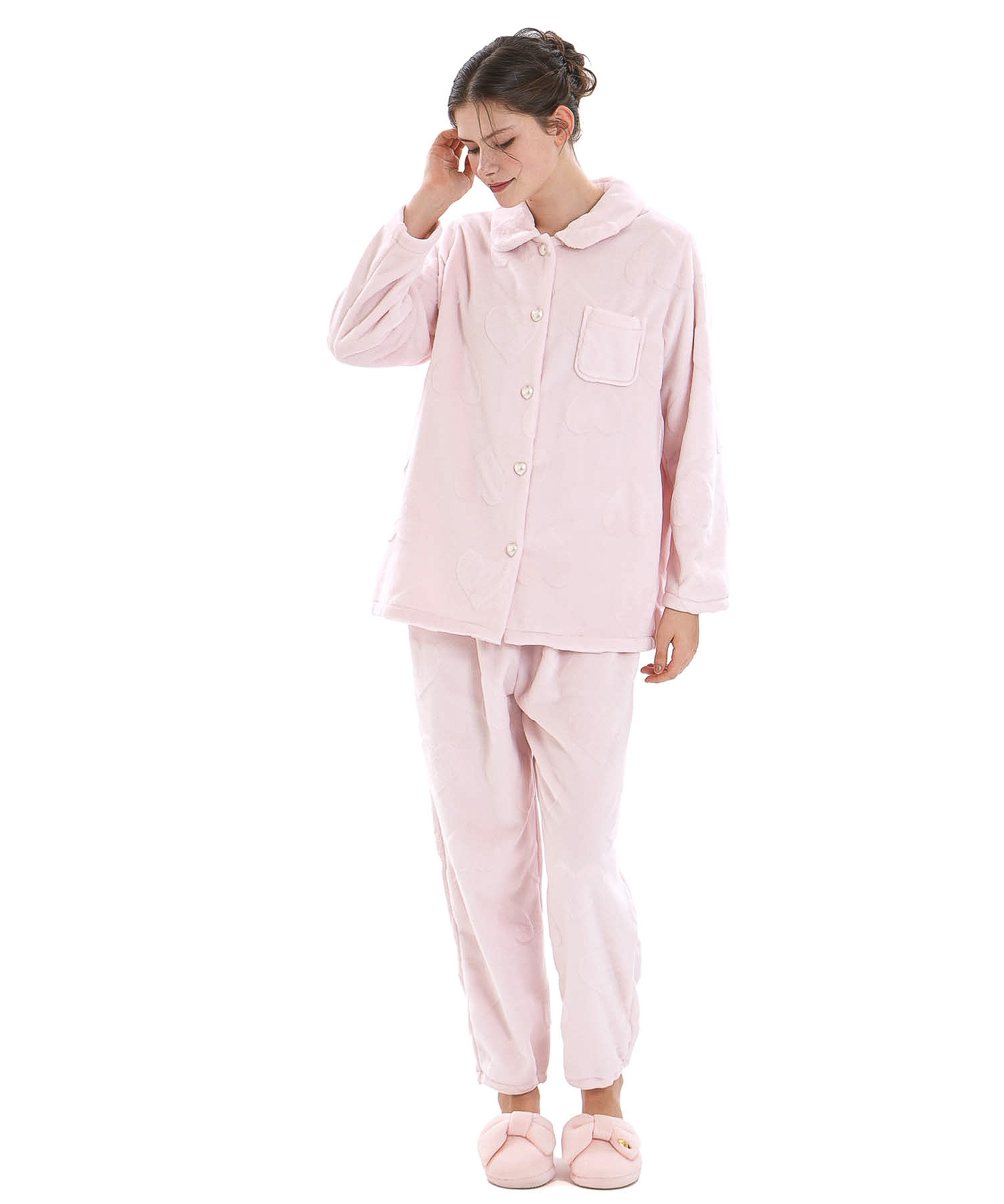 ボタンは優しい光沢感のあるパールのハートボタン。上品さが引き立ち、魅力的な一着です。
