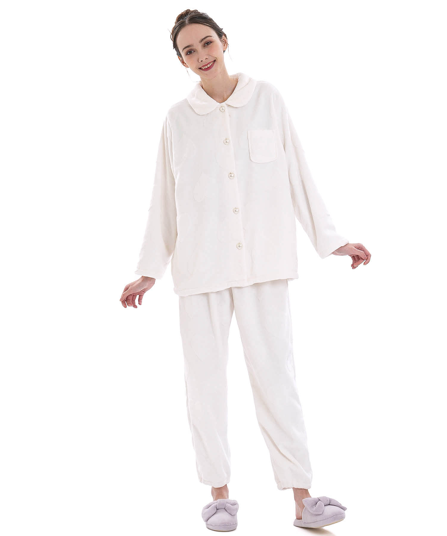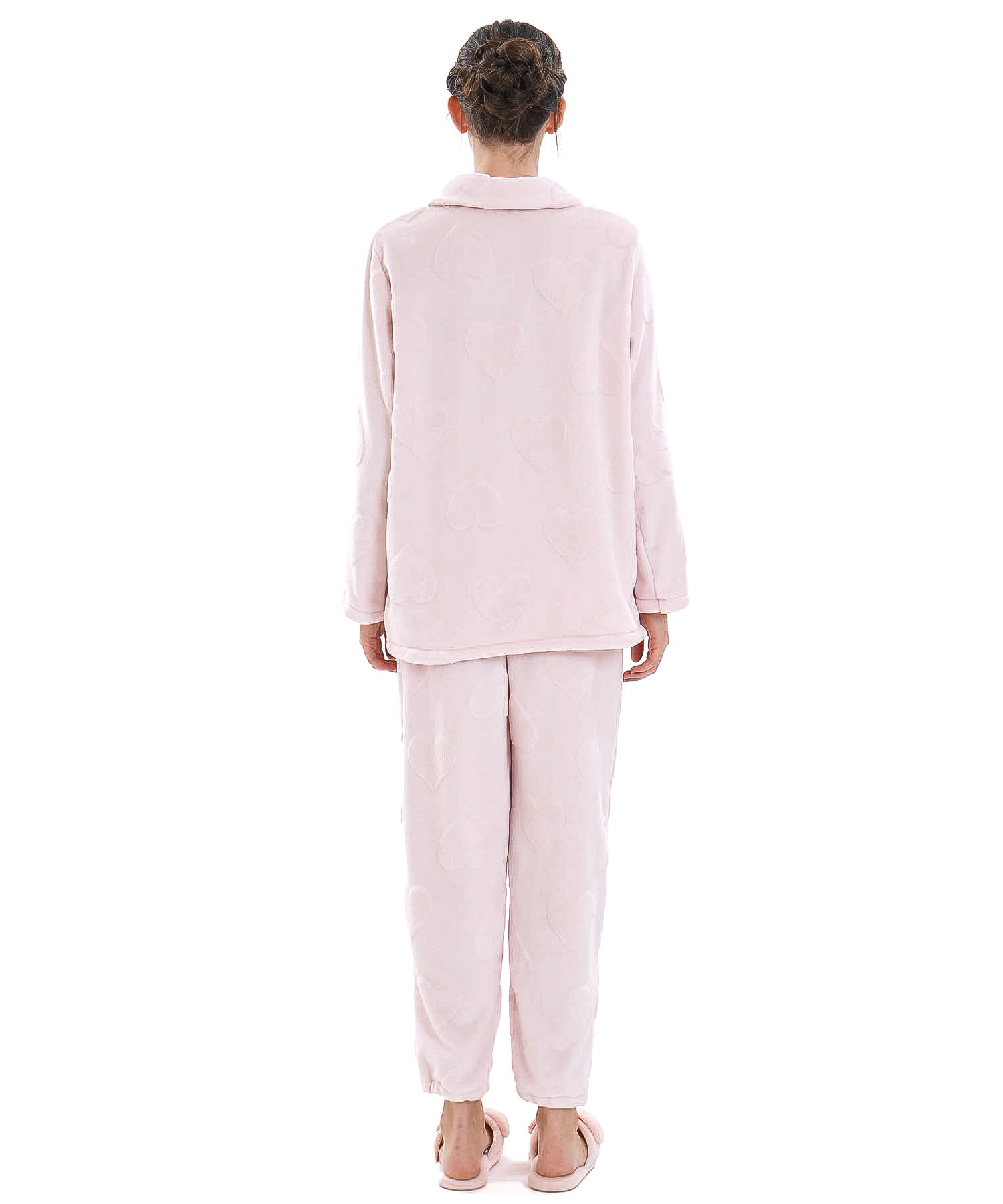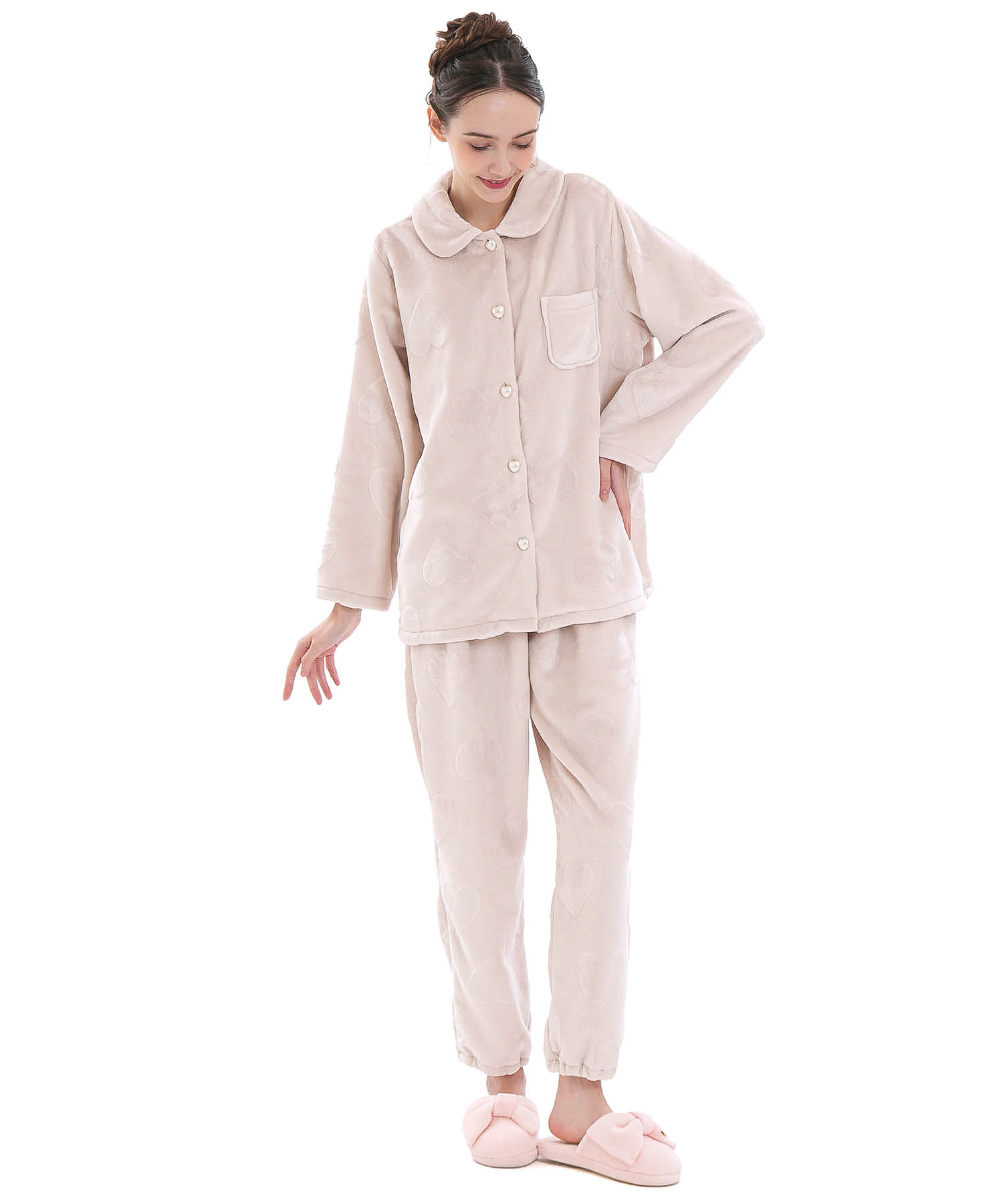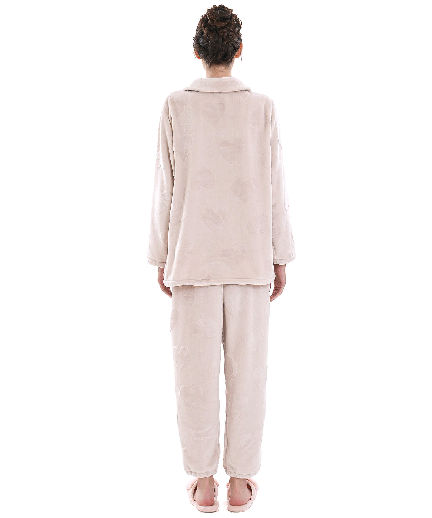 ボタンは優しい光沢感のあるパールのハートボタン。上品さが引き立ち、魅力的な一着です。
