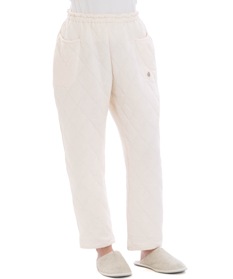 綿100%のニットを二層に接結し、間に中わたを挟んだ、ふっくらあたたかな素材です。