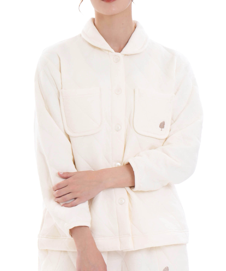 襟まわりやポケット縁には同素材のバインダーをあしらい、より立体的な仕上がりに。