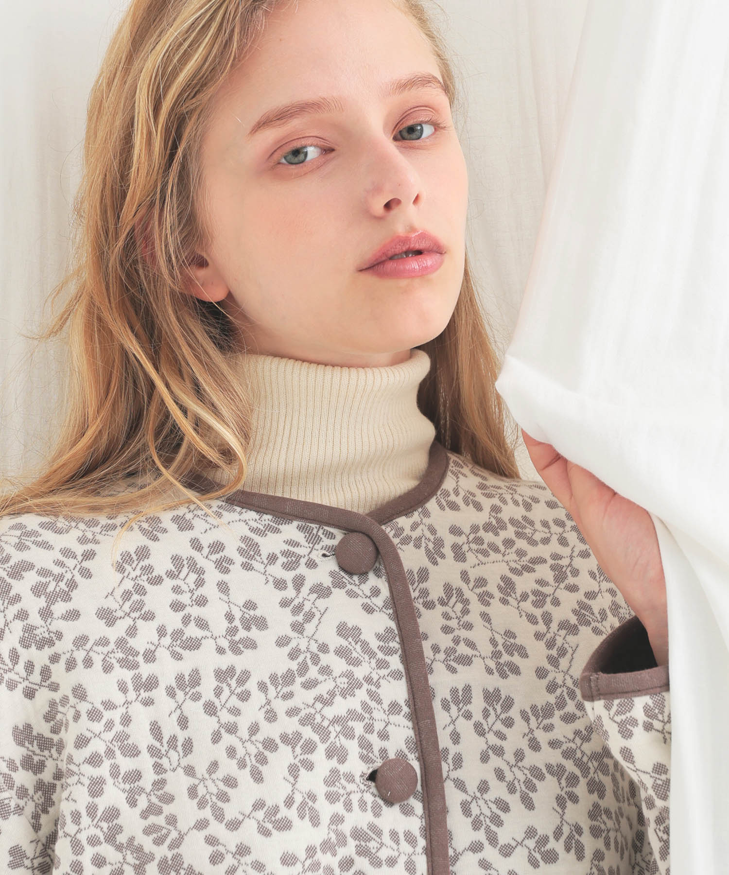 シーズナルな暖かみを感じる木の実の柄はジャガード編みで表現することにより、立体感のある仕上がりに。