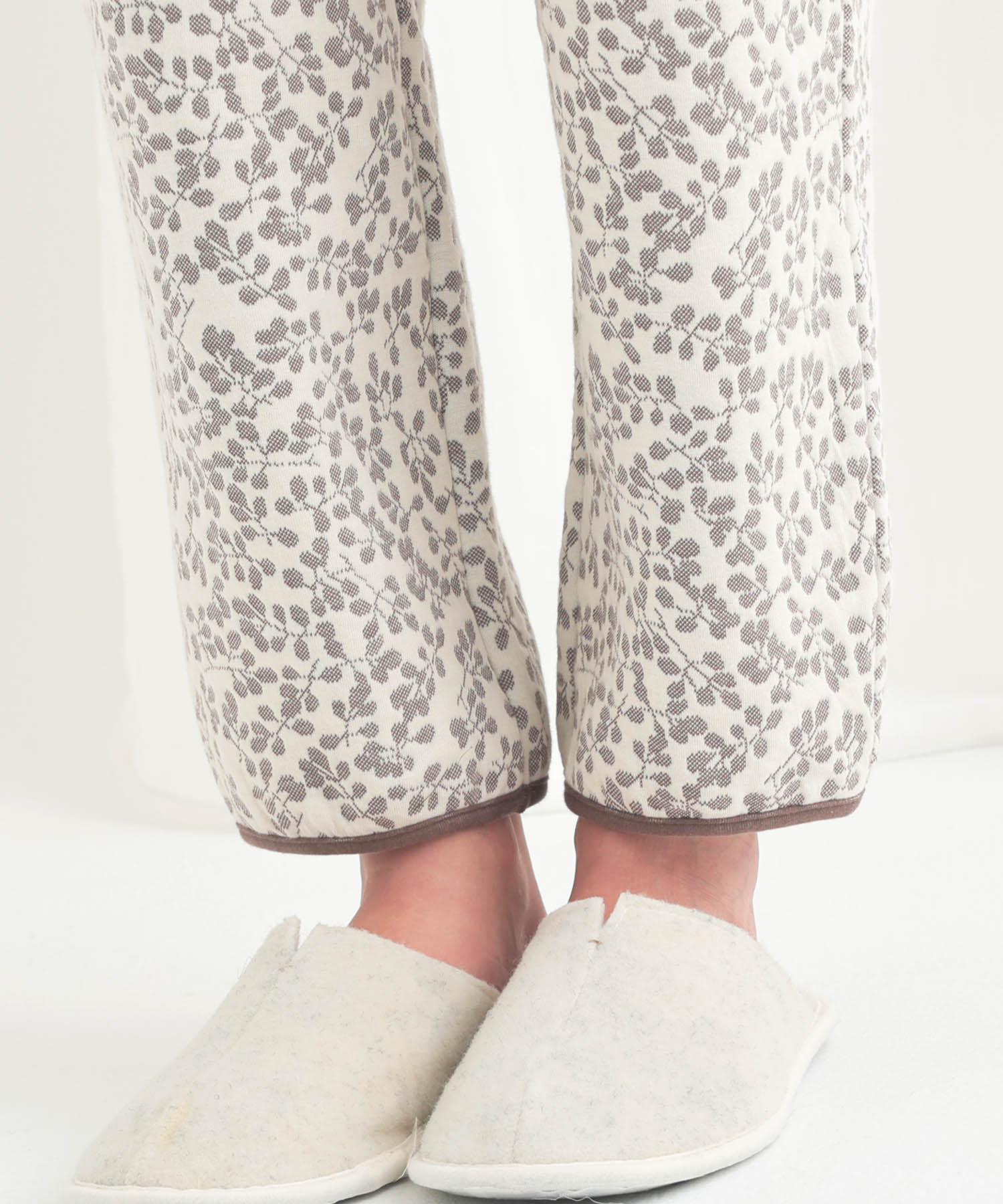 パンツは足口を同素材のバインダーでくるみ、ふっくらと空気を逃がさない裾すぼまりの仕様に。