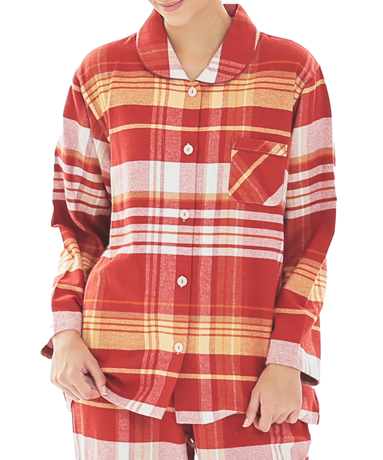 パジャマの定番柄であるチェックをベースに、洗練されたカラーリングで仕上げることで、他にはない大人可愛い雰囲気に。