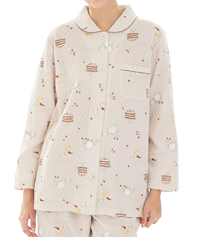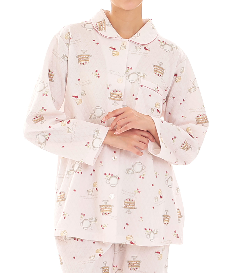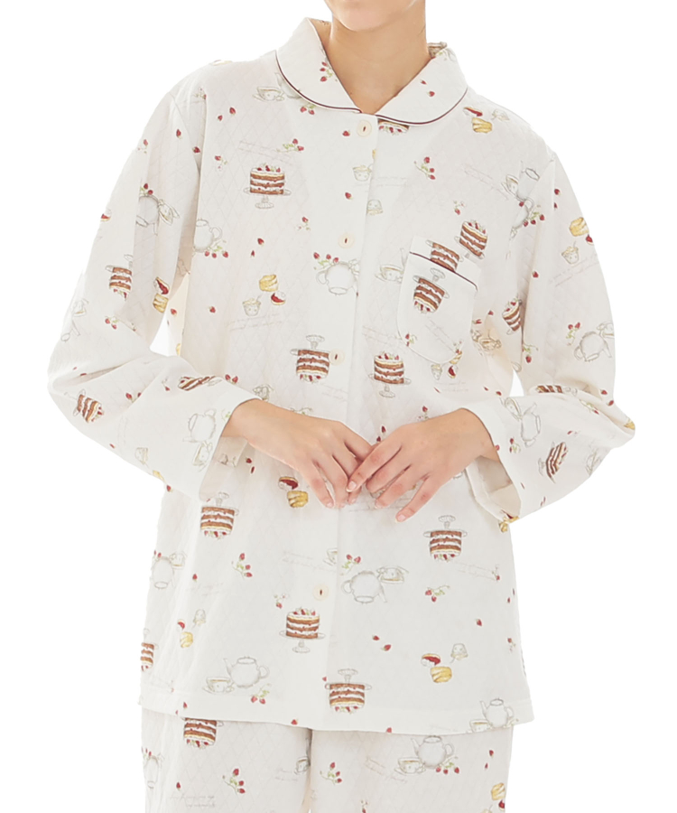 やわらかな水彩タッチで思わず和む、大人可愛いスイーツ柄に。