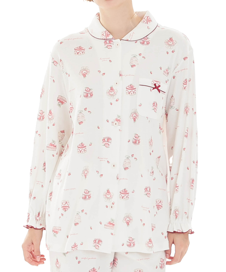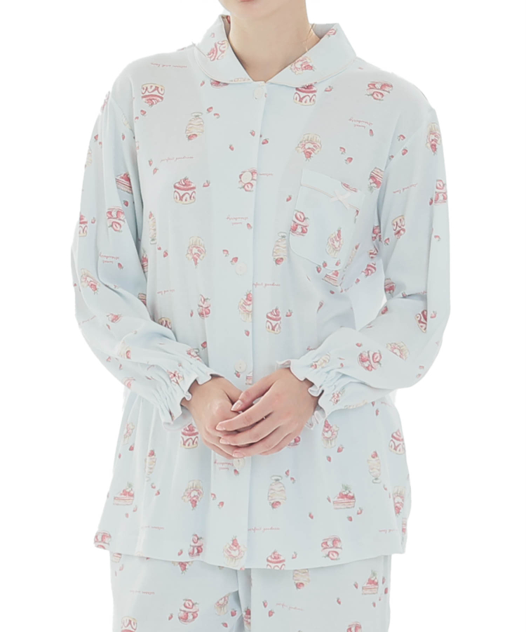 袖口と足口のフリルはゴム入りで冷たい空気をシャットアウト。