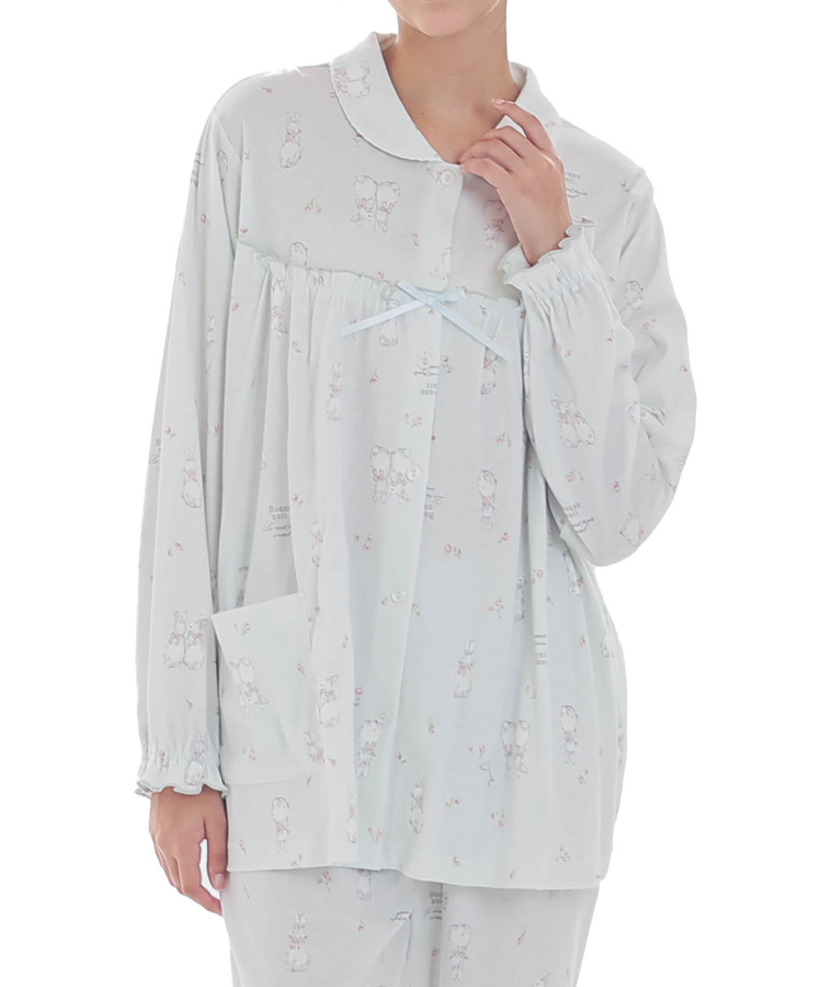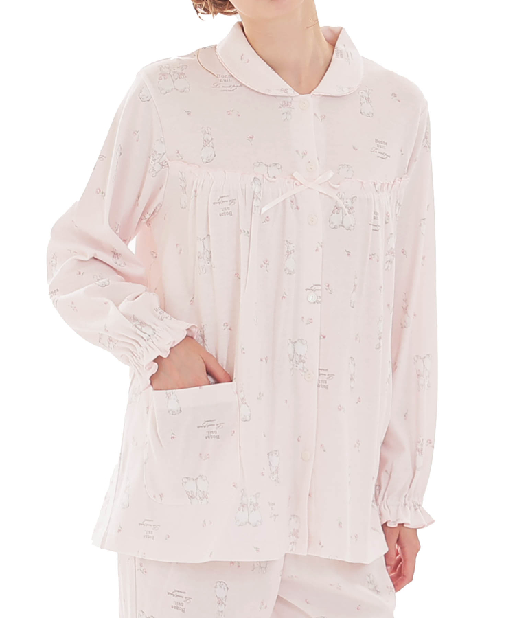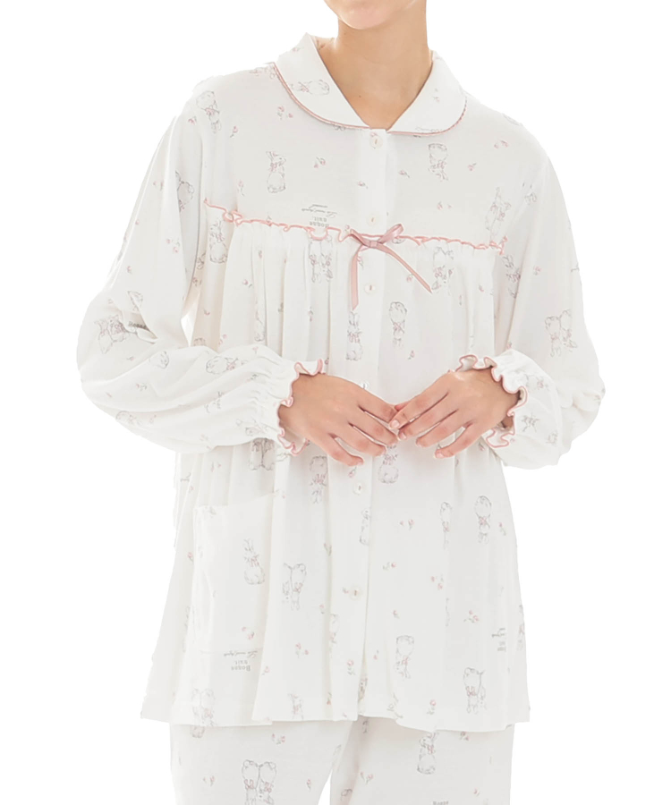 小ぶりな丸襟が上品な定番の前開きパジャマ。