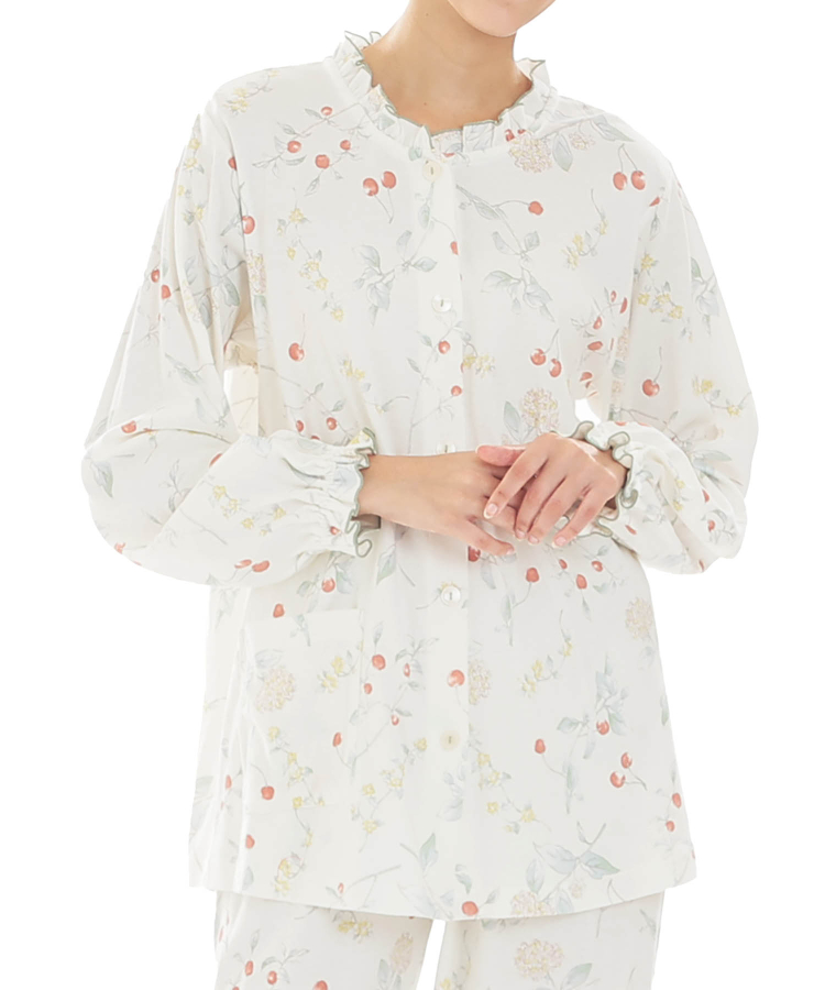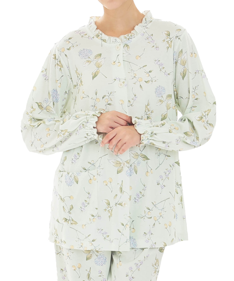 きれいな柄を引き立てるエレガントなフリルの襟。