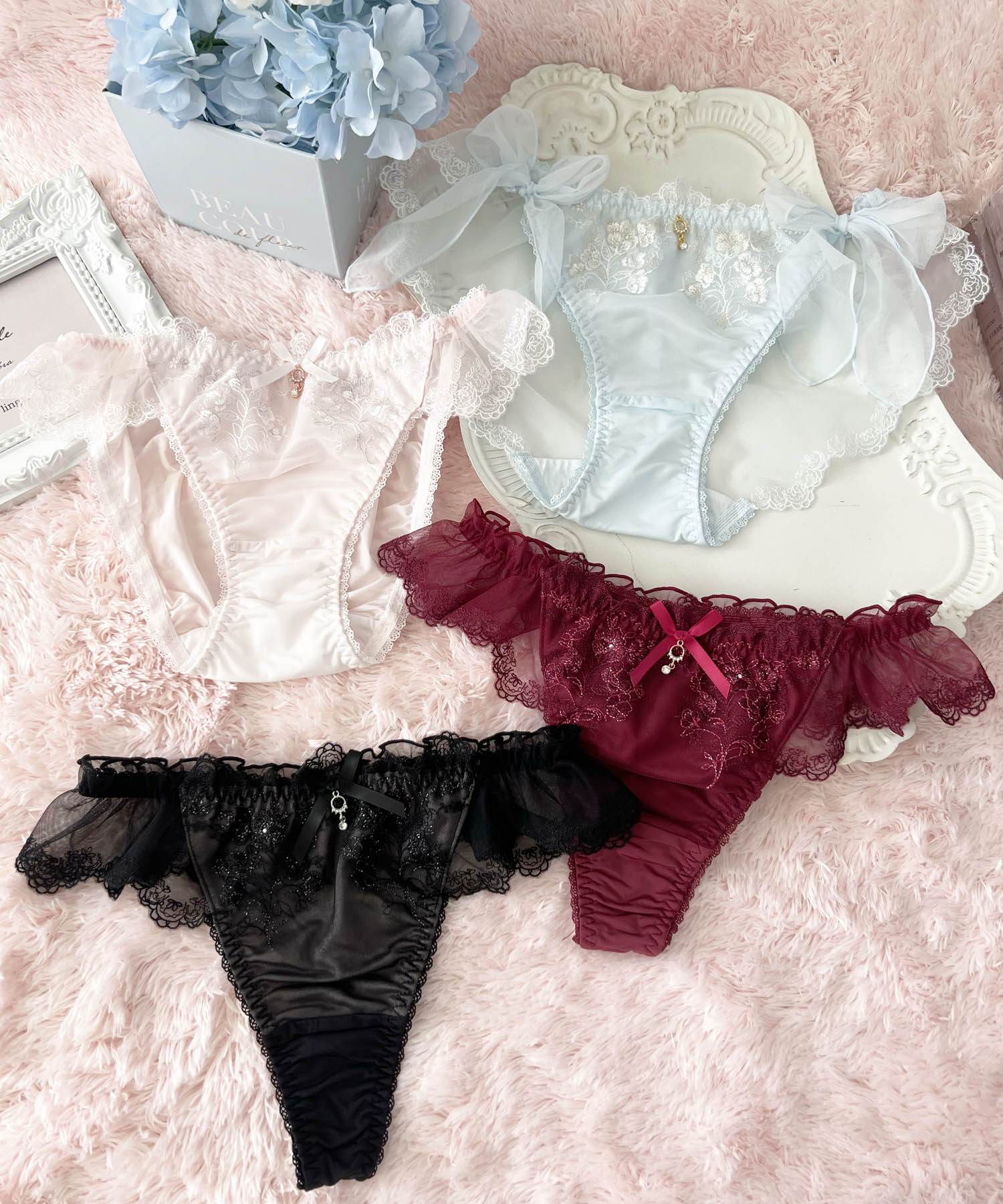 ふんわり大きなチュールリボンのショーツ。ブラジャーとのコーディネートもお楽しみ頂けます。