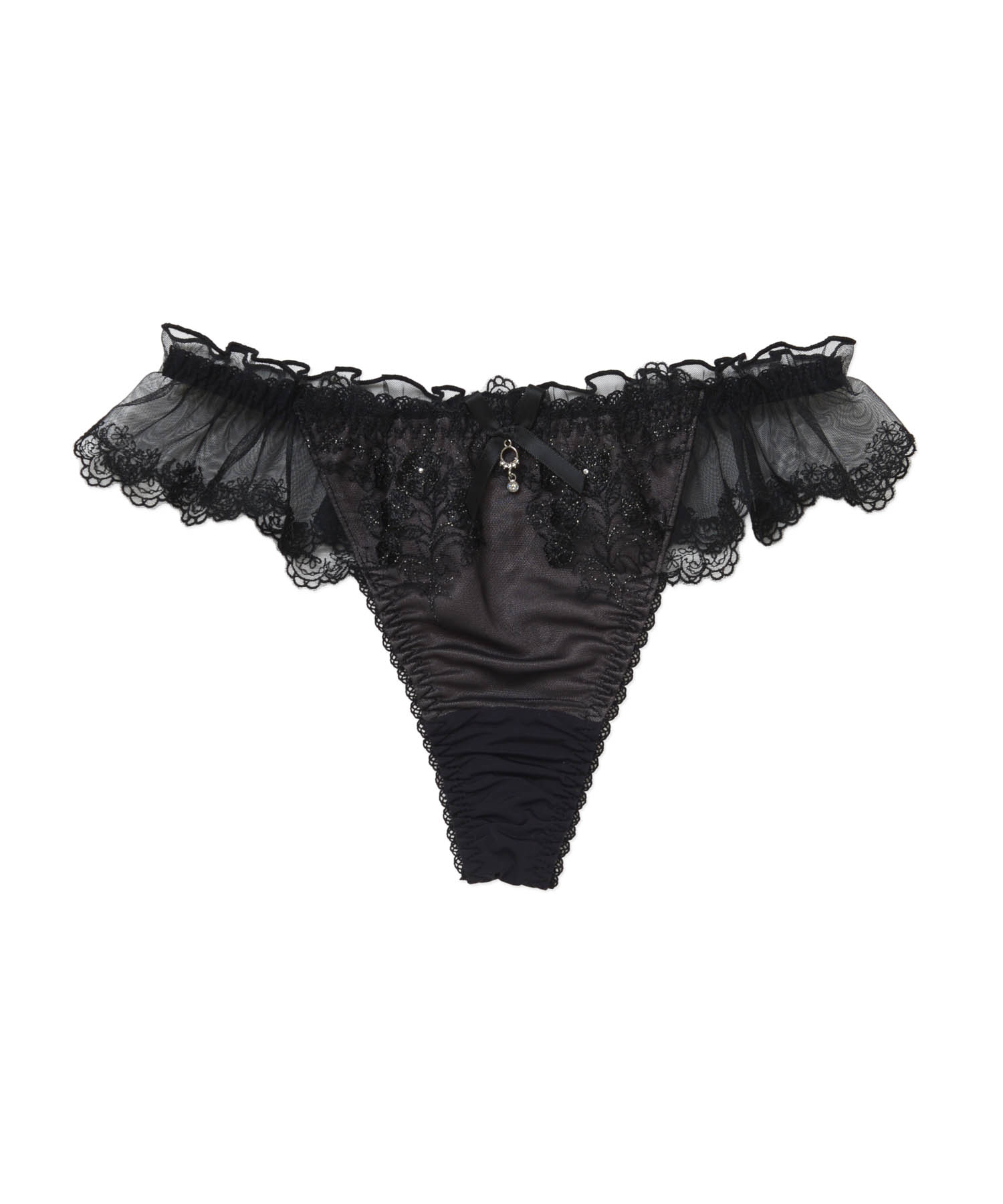 ブラック:ほどよいラメ感と抜け感を入れて女性らしい軽やかなブラックに仕上げました。チュールのフリルで甘さをプラス。