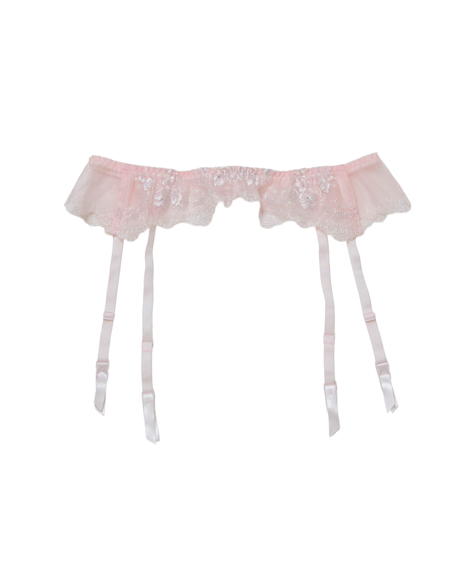 ピンク:優しいパウダリーピンクにホワイトの刺繍でフェミニンに。ラメ糸とラインストーンできらびやかに。