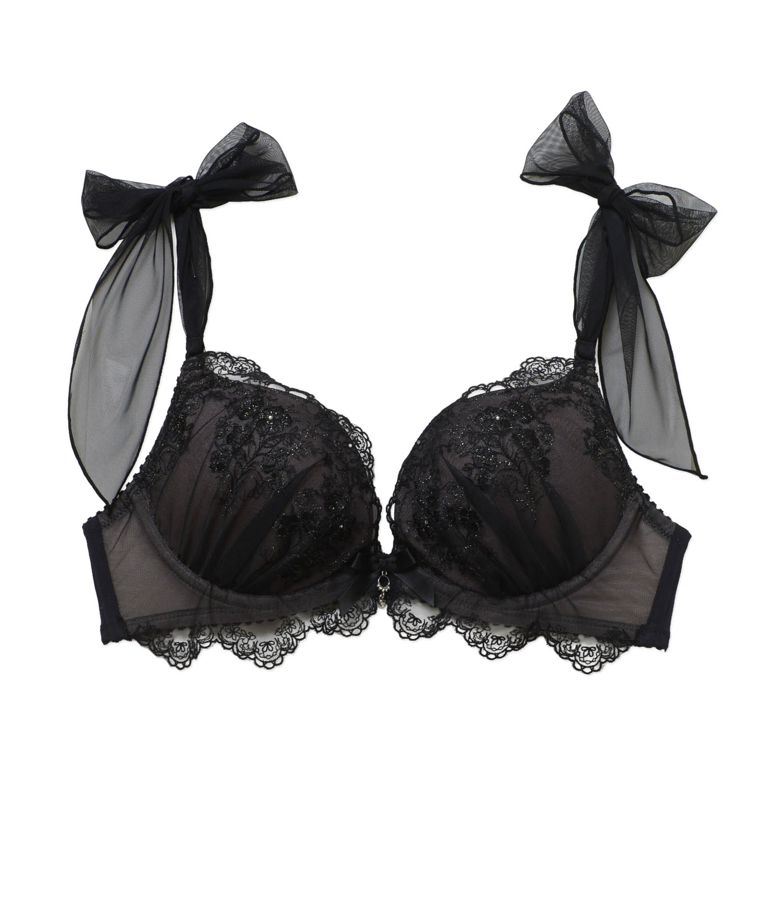 ブラック:ほどよいラメ感と抜け感を入れて女性らしい軽やかなブラックに仕上げました。チュールのフリルで甘さをプラス。