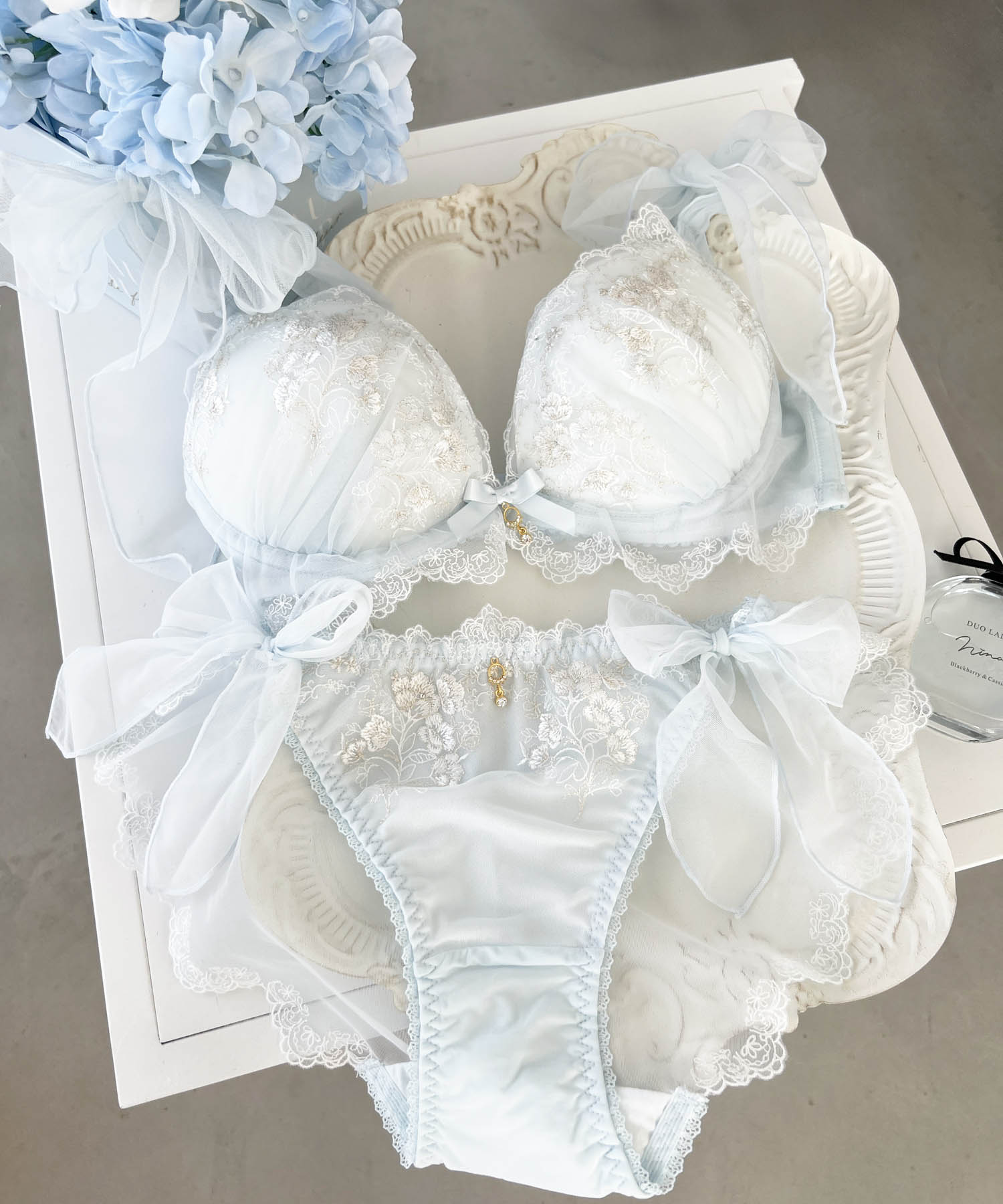 ピンク:優しいパウダリーピンクにホワイトの刺繍でフェミニンに。ラメ糸とラインストーンできらびやかに。