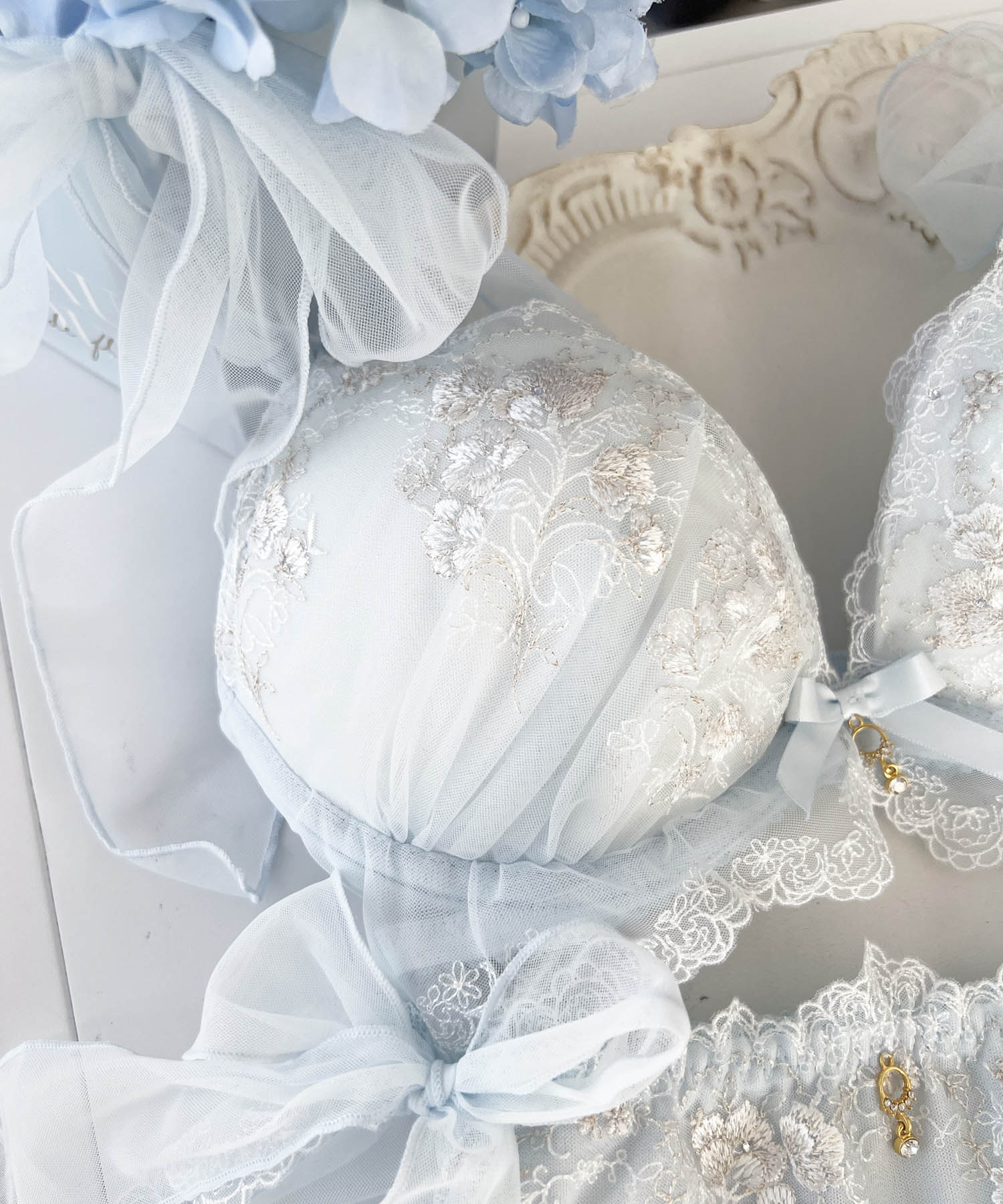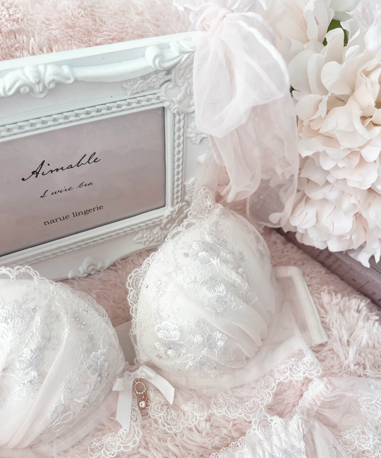 アンダーのレースにギャザーを寄せてフェミニンなデザインにしました。